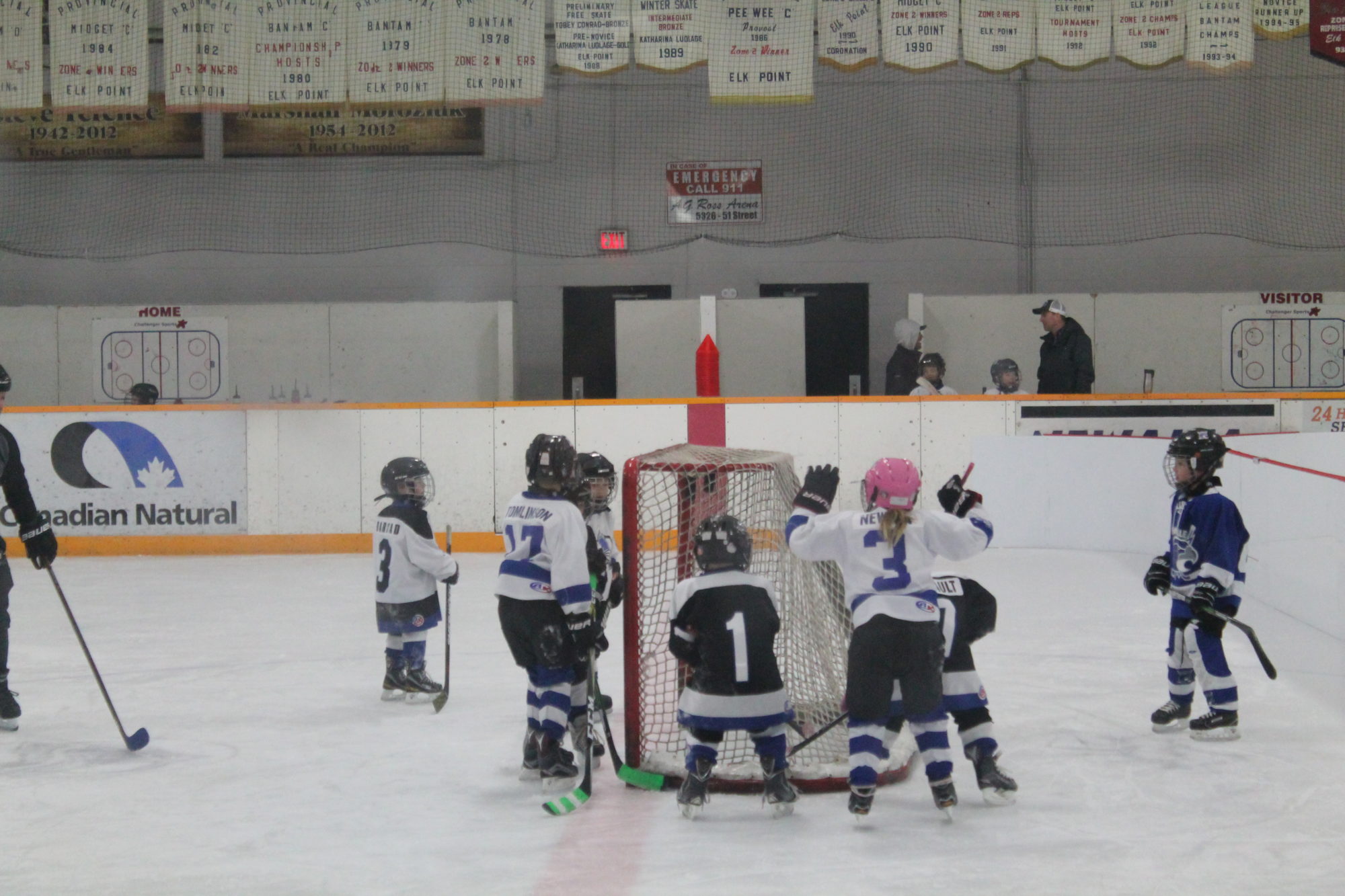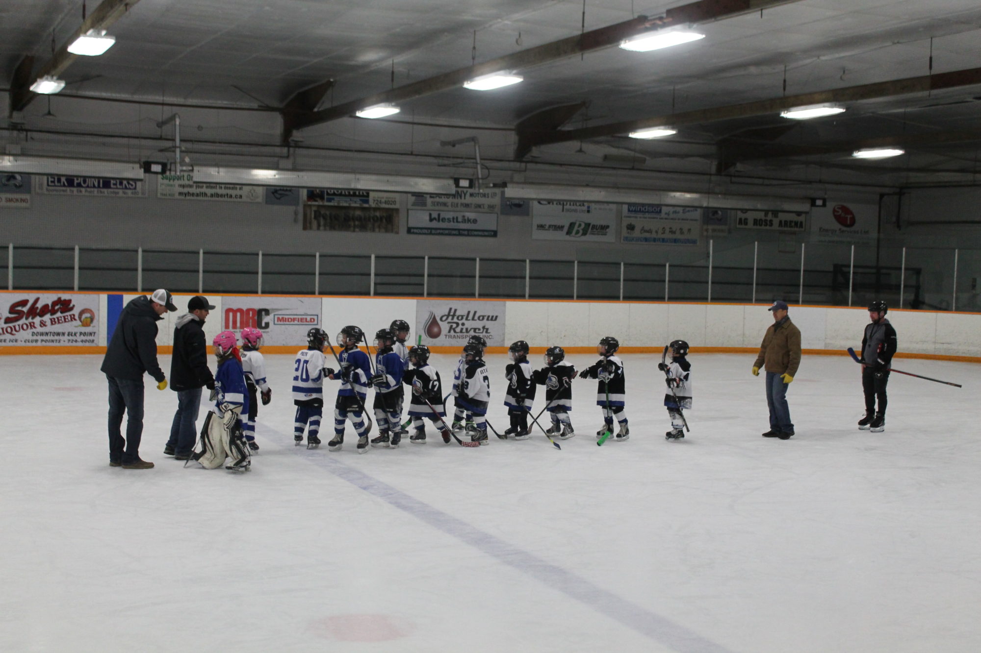 The cold minus 35 weather may have kept the kids at home from school this past week, but nothing will stop the hard core hockey fans. The Micro Novice came out Saturday morning at 8.30 am to play. The opposition travelling an hour from Mannville. The temperature at my house in town was minus 33 and I’m sure it was colder in some places in the country. It was warmer in the arena timebox but not by much at that time of day. Burrr!!