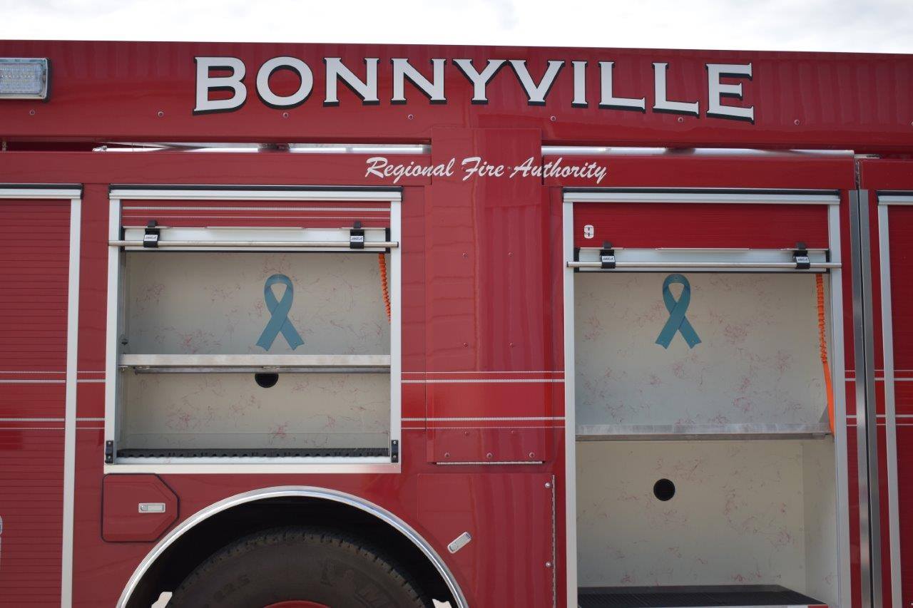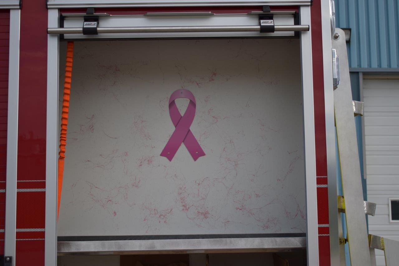 This is the first truck to be replaced since Primeau’s passing, Melvin said the BRFA wanted to do something special. The department had blue and pink ribbons decaled on the truck. The pink to represent breast cancer and the blue to represent prostate cancer.