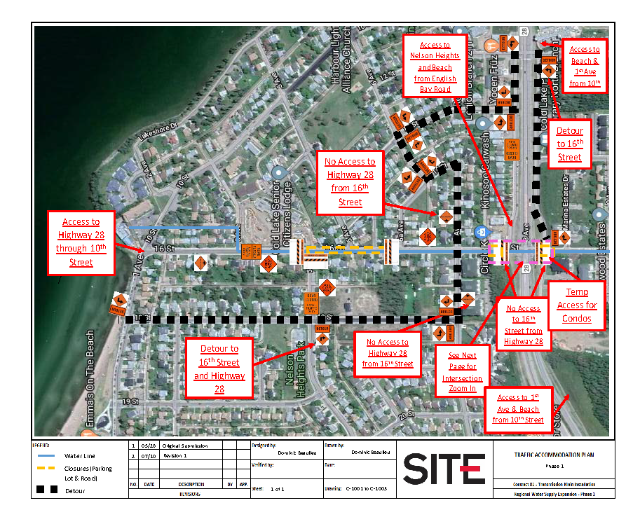 Access to 16 Street from Highway 28 will be closed to prevent vehicles from turning off of Highway 28. Residential areas will still be accessible from English Bay Road. With beach access will be made available through 10th Street.