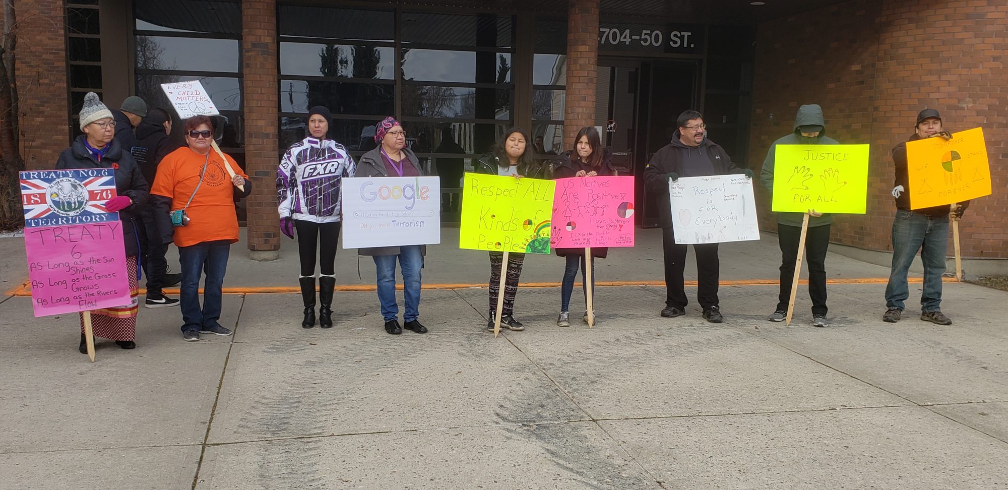 Band members from Saddle Lake gathered outside the St. Paul Provincial Court.