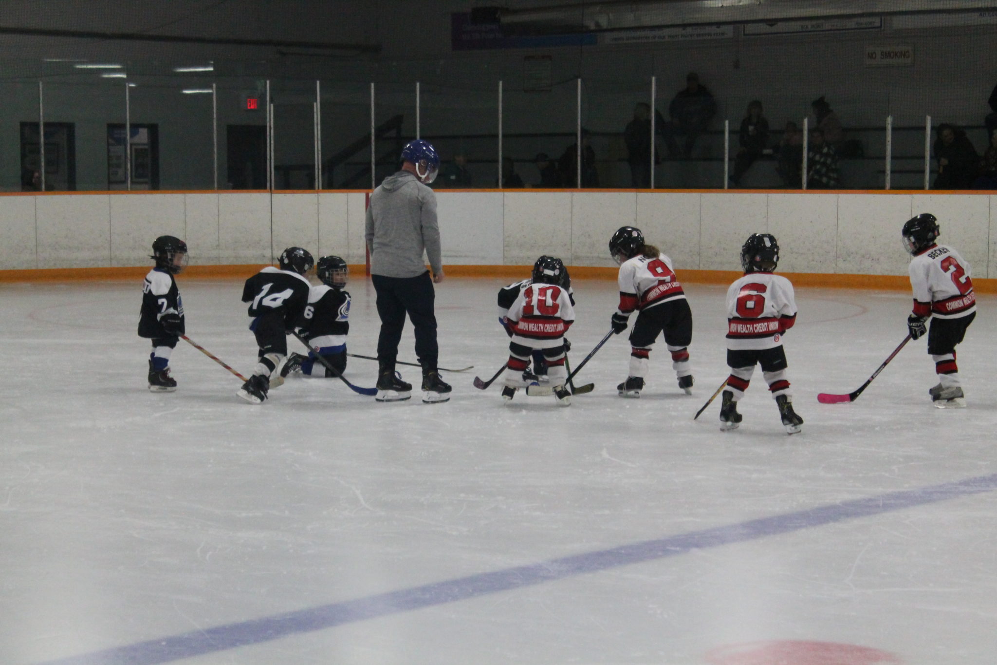 Hayden Badger and Ryder ‘Rhino’ Malo each with a goal and an assist. The two female players on this team seemed to be the most aggressive of all of them on either team. They hounded the other team and many times their own team mates for the puck. Ava Rawlake and Avree Lesyk each scoring their first goals of their career. Hopefully their parents kept the puck. This will not be their last. Hudson ‘Hammer’ Krankowski, Lennox ‘All Out’ St. Arnault and Luke Osinchuk all with assists. ‘Major Tom’ Melnyk played outstanding in net. Obviously he has practiced there before or played some road hockey with his dad, the coach Chris because he seemed more than comfortable behind the mask with the big pads and goalie stick.