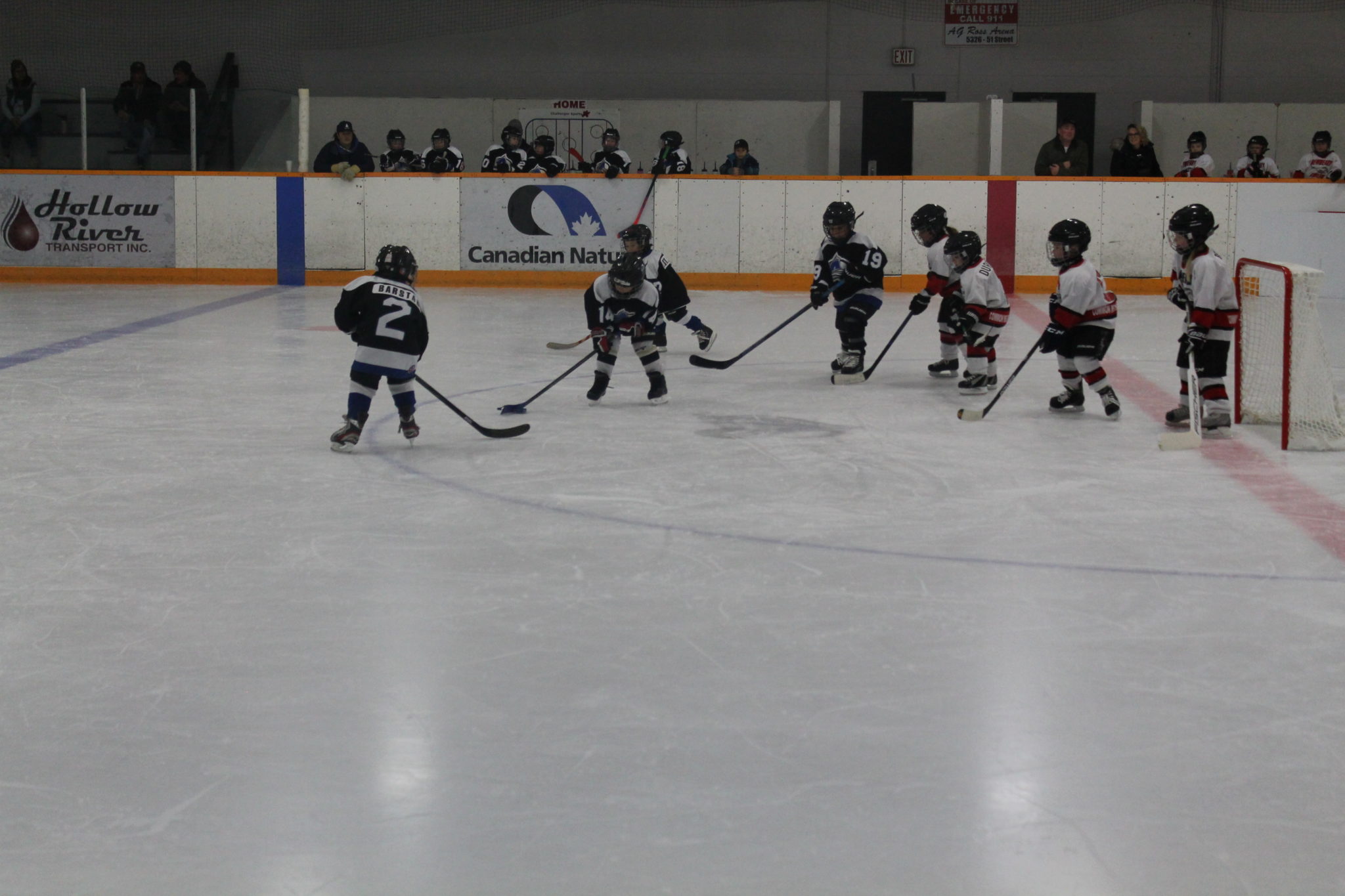 The Avalanche hosting Cold Lake in the new four on four half ice format. Lots of speed on the half ice and players changing on the go, jumping out of the players box every minute and a half. All the players on both teams getting an opportunity to touch the puck. Jesse James Penner picked the top shelf with five goals. Most kids at this age can hardly raise the puck. But Jesse James may be the exception, he has incredible skill, strength and the knack of going roof daddy.