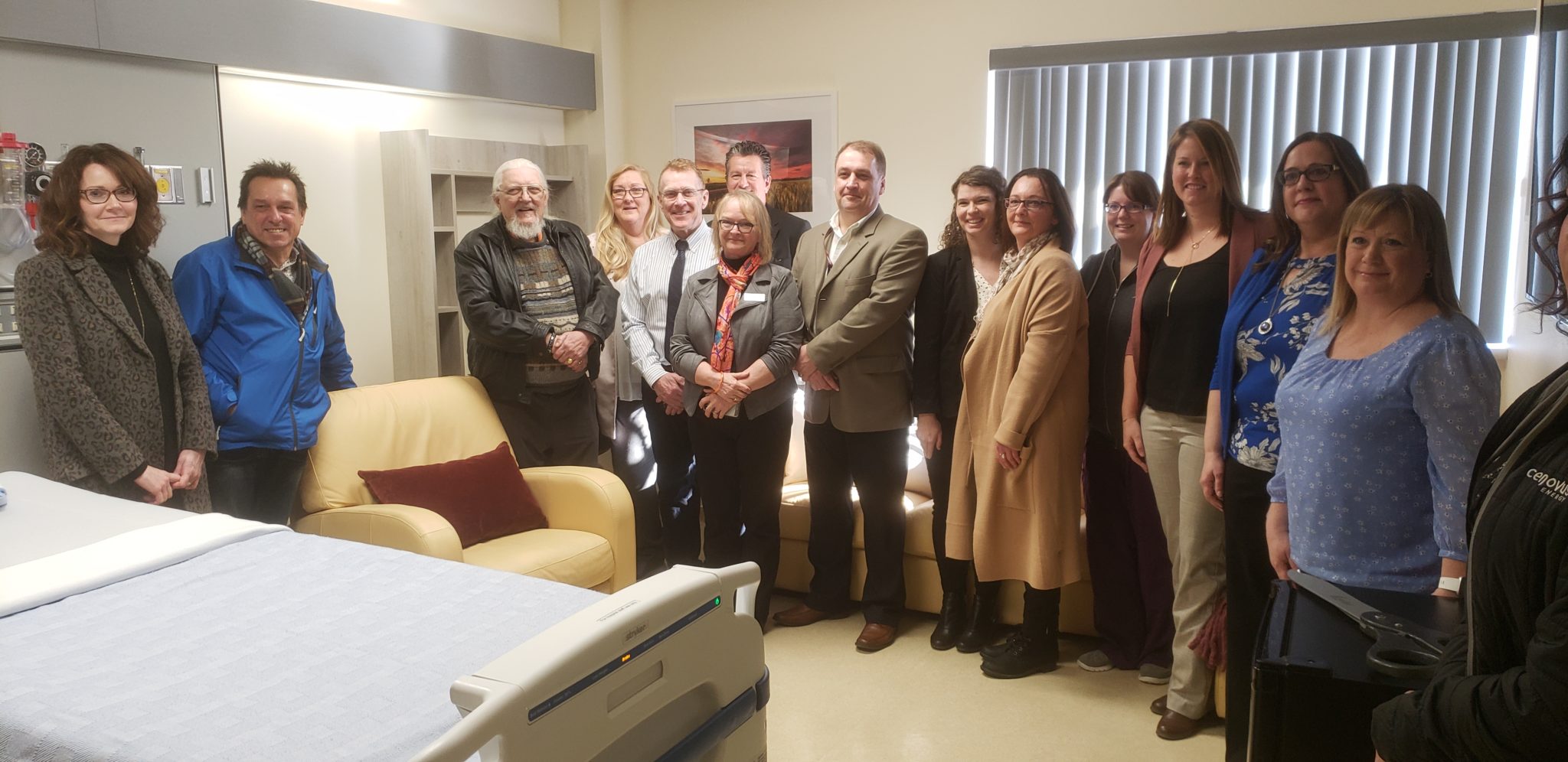 Community members, AHS, Hearts for Healthcare, Cold Lake Palliative Care Society and local dignitaries in one of the newly renovated rooms.