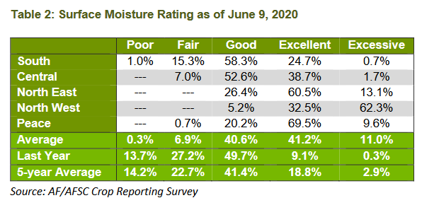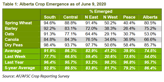 Provincially, 75 per cent of the crops have emerged, 12 per cent behind the previous five-year average.