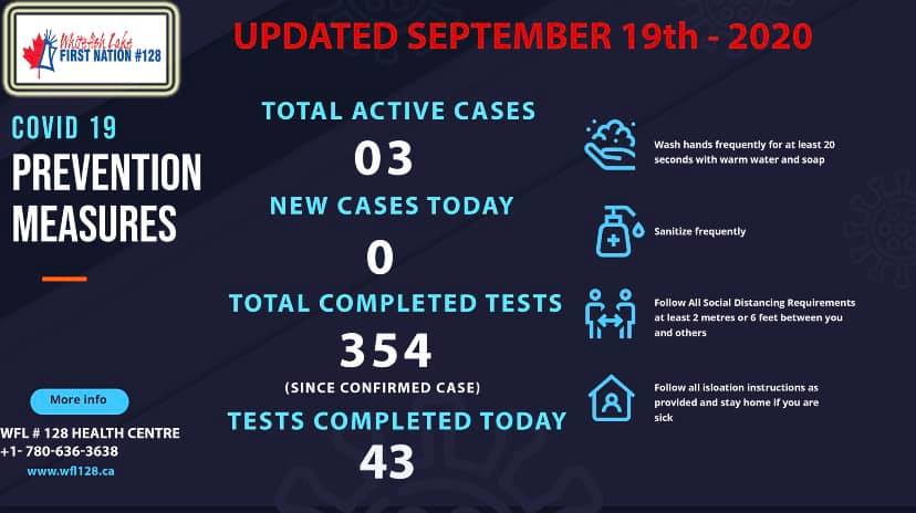 Whitefish (Goodfish) COVID cases as of Saturday. Image credit: Whitefish Lake Cree Nation.