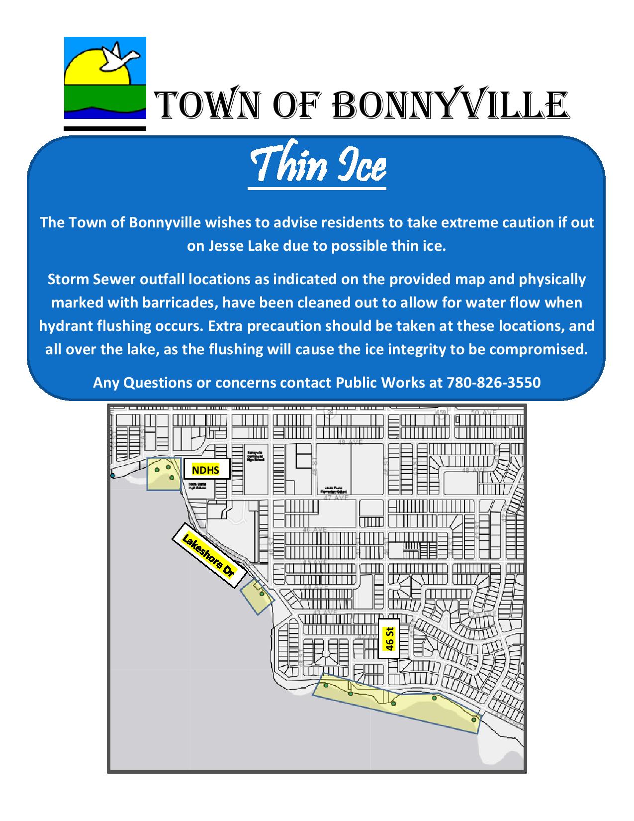The Town of Bonnyville is advising residents to take extreme caution if they are out on Jessie Lake due to possible thin ice.