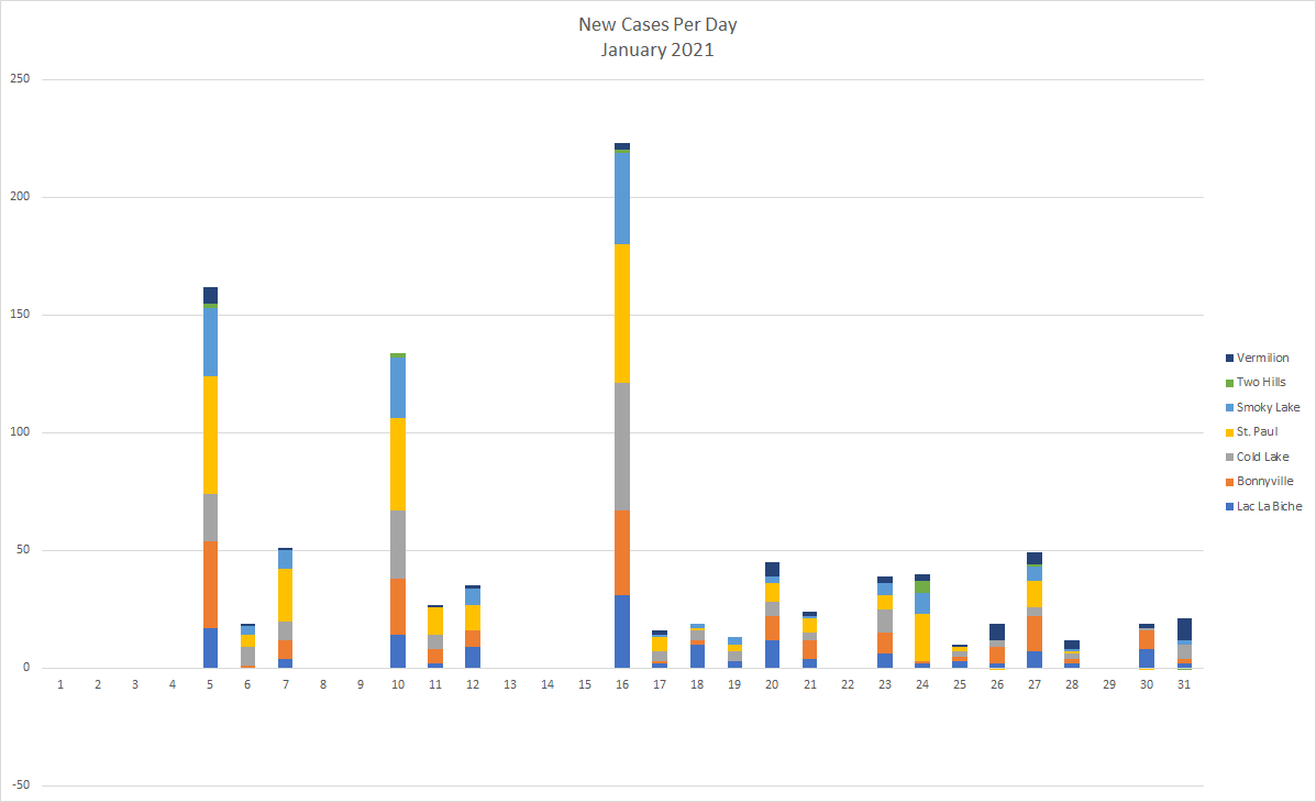 Seven people in the Lakeland have died of COVID-19 since Jan. 25. Two each in Lac La Biche and Bonnyville, one in St. Paul, one in Smoky Lake, and one in Vermilion according to the municipality view of the Alberta COVID-19 map.