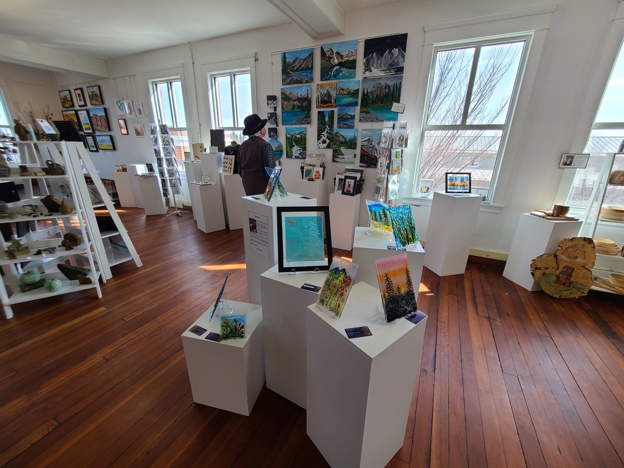 Upper Level Pottery & Art Gallery features more original hardwood flooring and in their newest addition, Underground Local Treasures, they have sealed over the original grocery store flooring and exposed an original stone wall.