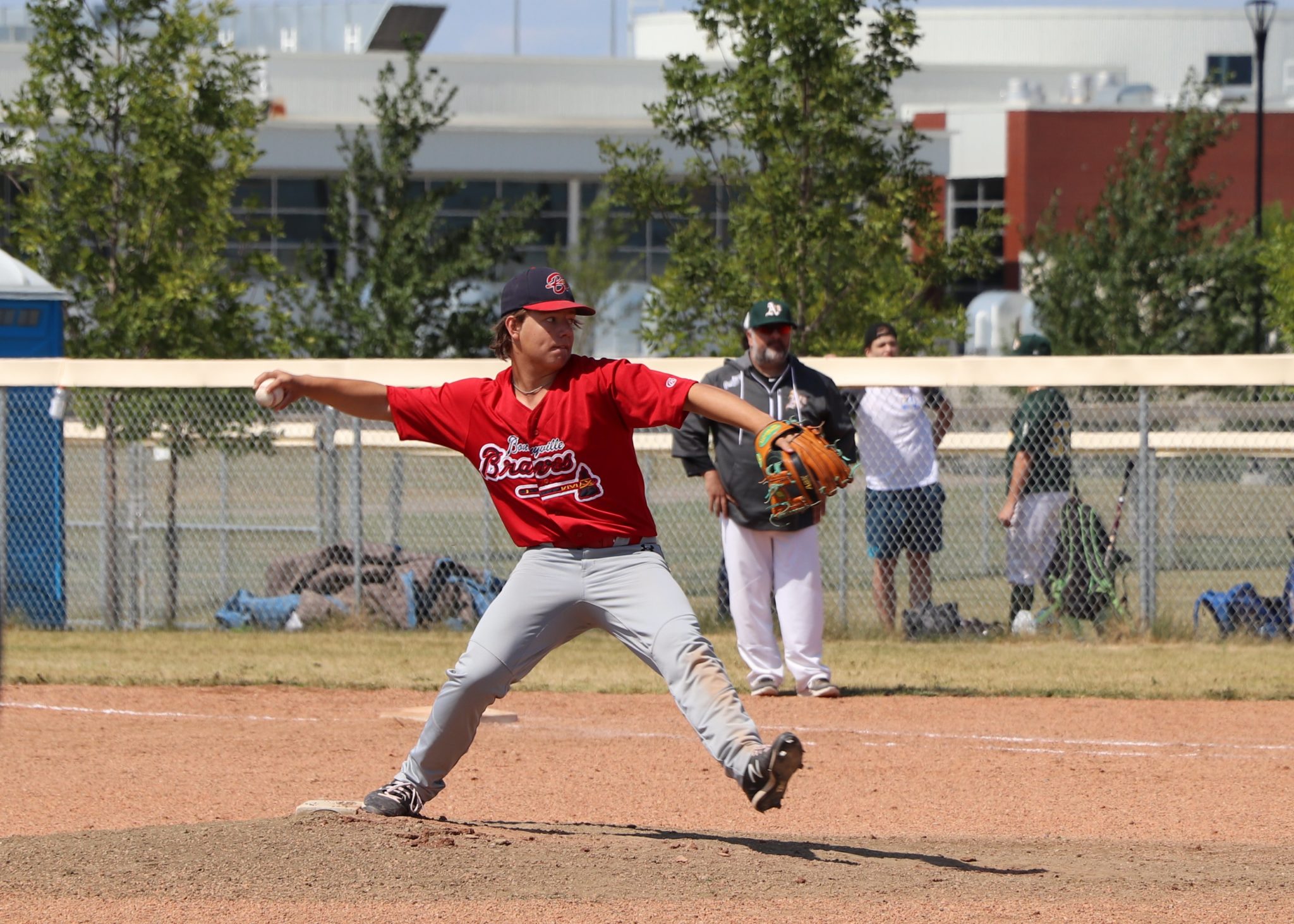 They played Grand Prairie next with the big unit Carter Goreniuk “Gronk” pitching. He pitched another great game, setting the team up for another win. Brady Cooper came in to eat up some innings and has been improving all year with his  pitching giving the Braves more arms. Shawn Vallee “SV” came into close it out and did an excellent job shutting them down. Kalem Straughan had a hit and RBI helping the Braves mercy the Reds  15-4 in  5 innings for the win.