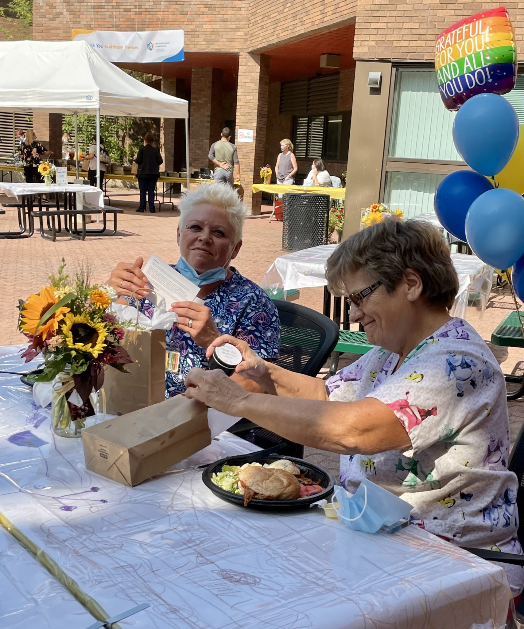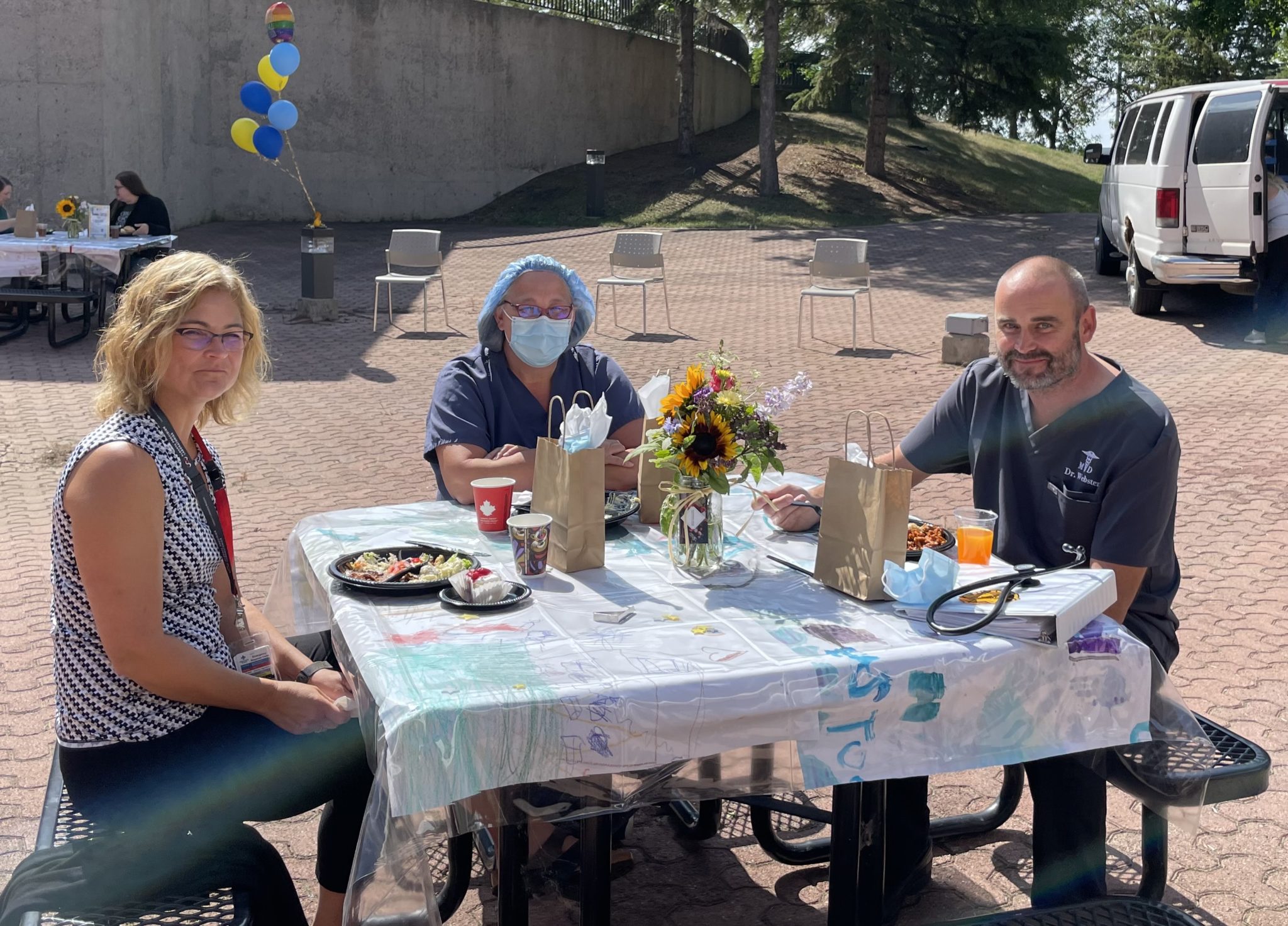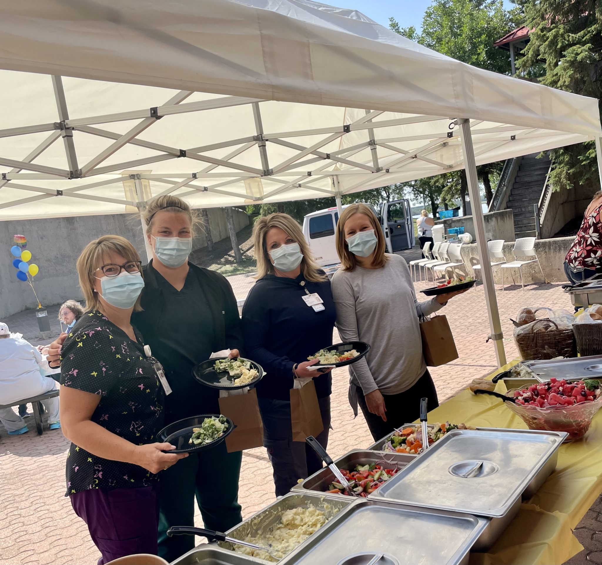 On Wednesday, August 18, the Bonnyville Health Foundation (BHF) hosted a sunny outdoor reprieve and gourmet lunch for over 140 staff from the Bonnyville Health Centre and Bonnyville Medical Clinic staff to celebrate their contributions to the safety of our community throughout the health pandemic. In addition to a wonderful meal, the local healthcare heroes also received gifts of ‘wellness’, an assortment of self-care items purchased from local vendors.