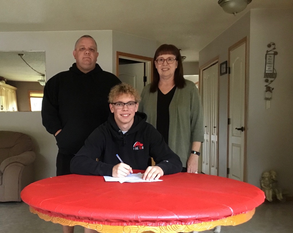 Noah Heinrich signs a letter of intent to join the Bonnyville Pontiacs organization. Image submitted.