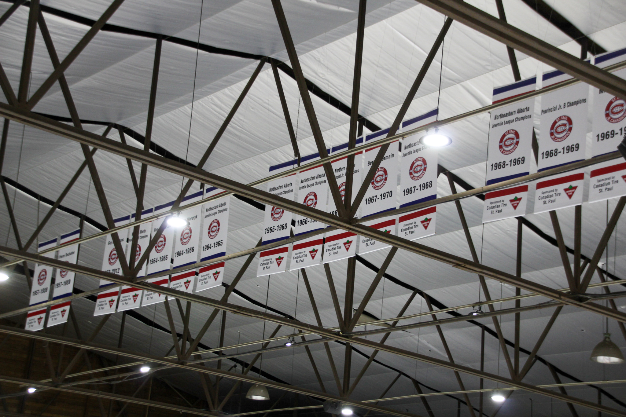 Hanging from the rafters of the Clancy Richard Arena is fresh banners for previously unrecognized championships, including a special mention of the Canadiens dominant teams from 1969-1971 that were one of the best in western Canada. These teams were inducted earlier in the St. Paul Canadiens Hall of Fame.
