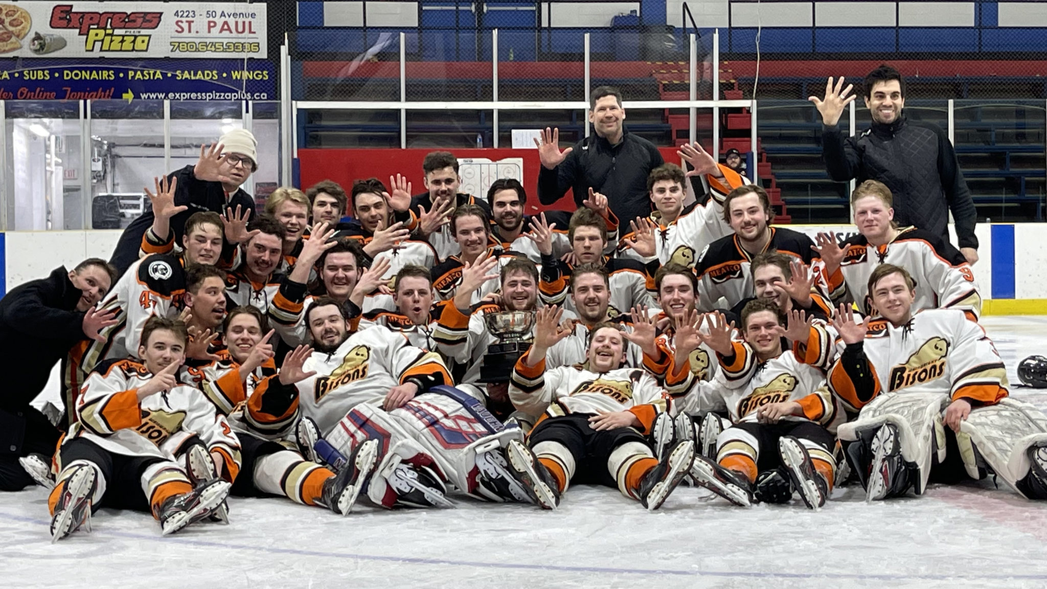 The Wainwright Bisons went 8-0 in the post-season en route to their fifth straight NEAJBHL title dating back to 2015-16. Although the Bisons were eliminated in 2019-20 in the league semifinals, the NEAJBHL title wasn’t handed out due to COVID restrictions being swept into place in early 2020, stopping a potential final between St. Paul and Lac La Biche.