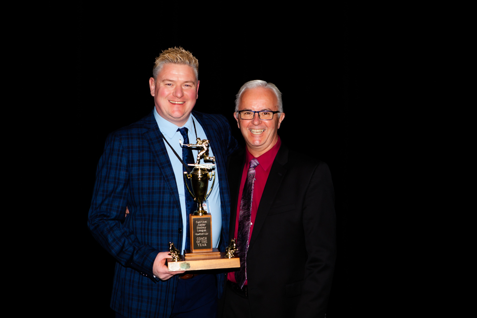 Corey Bricknell, Coach of the Year, Cold Lake Aeros, with owner Axel Axmann. Image credit: Brent Burden Photography.