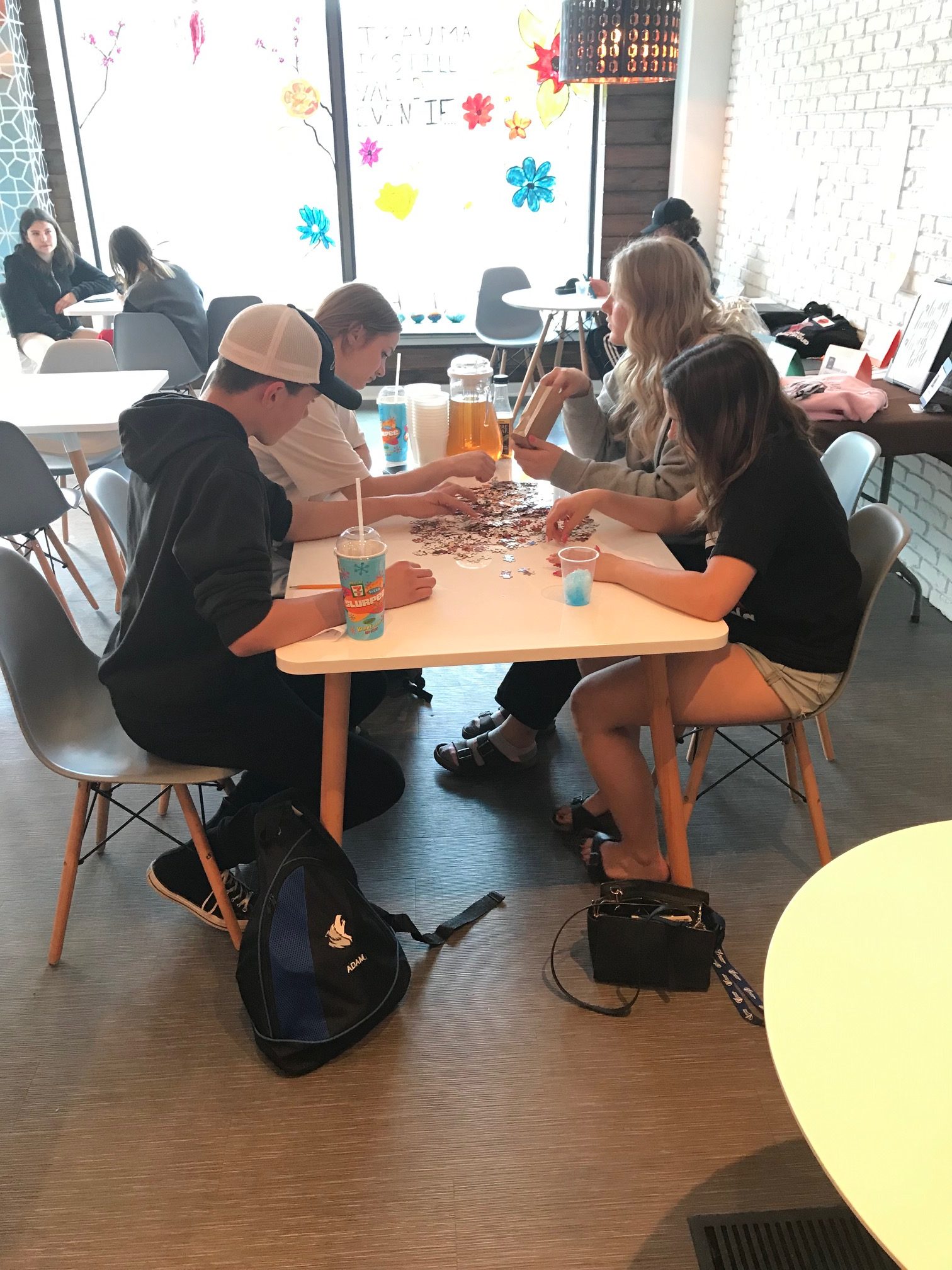 Nine local businesses donated items for the opening day draws and the young adults enjoyed the latte machine, popcorn, snow cones and juice in addition to the welcoming vibe of the space with one student commenting, “I really enjoyed the coffee and conversation! It’s a great atmosphere.”