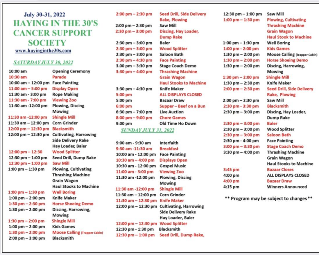 “We’re hoping it will be bigger and better than ever,” said Haying in the 30’s Cancer Support Society president Martin Naundorf.