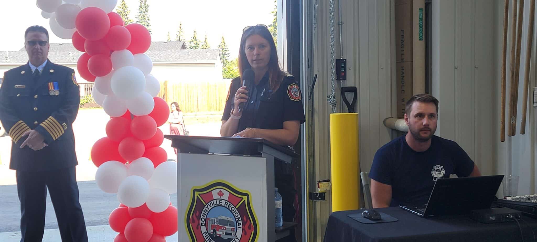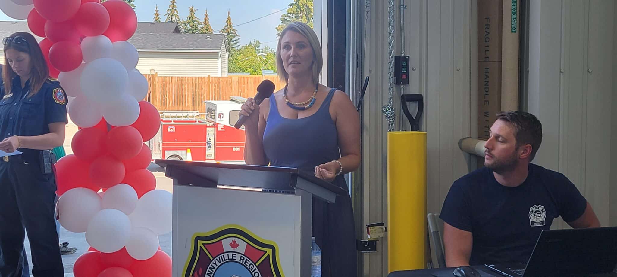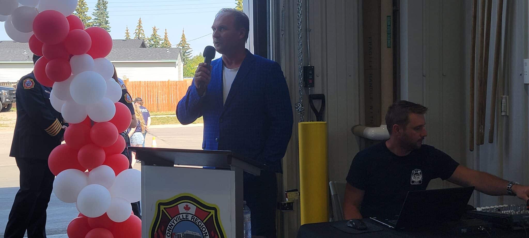 Dozens piled into the welcoming event, while dignitaries from the M.D. and Town of Bonnyville spoke, as well as MLA David Hanson, and BRFA fire chief Dan Heney.