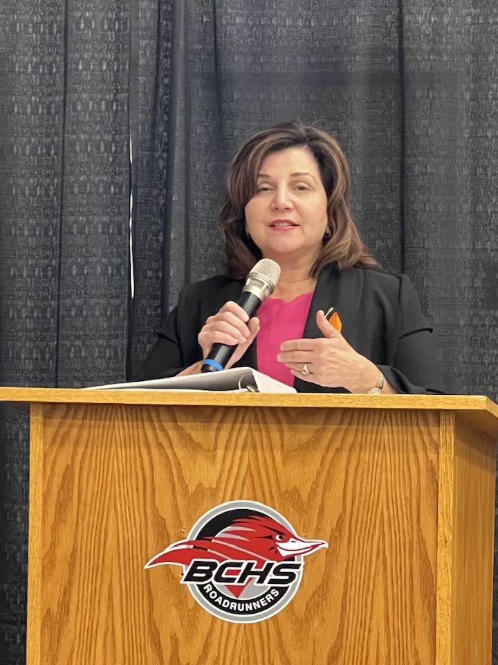 Bringing greetings on behalf of Premier Jason Kenney and the Infrastructure Minister, Nicholas Milliken, LaGrange officially welcomed students, staff, and the community to the newly modernized BCHS. “It is such a thrill for me to be here with Dave Hanson, he is a great advocate for this community and his constituency,” Minister LaGrange said, inciting a round of enthusiastic applause from the crowd.