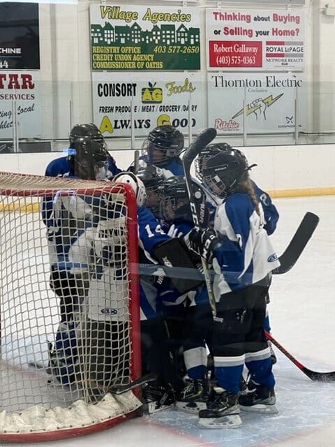 Everyone gets excited to play a home game on a Friday night. What better way to start the weekend? Even though the U13s played pretty well they did lose 7-3. Over the years Provost has always iced some very stiff competition. ‘Major’ Tom Melnyk strapped on the big goalie pads for the first time this year. He handed it over to Owen ‘Ollie the Goalie’ Gryhkuliak who came in on relief in the second half of the game. Two goals and an assist for Lia ‘Sledgehammer’ Swedgen. The Sledgehammer has a nose for the net. He likes to park just at the corner of the cage and poke them in. Set up man Remington ‘Steel’ Reynolds with a goal and two assists. Winding up behind the net and wheeling coast to coast ‘Wild Wyatt’ Fontaine also with a goal.
