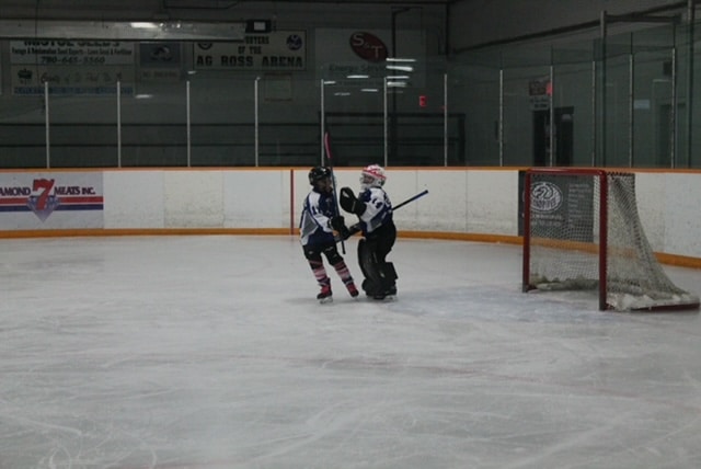Bright and early Saturday morning, the U7s faced off against the Dewberry/Marwayne Rustlers. Gavin ‘the Badger’ Brousseau with a hat trick. One of them assisted Rosaleigh ‘Rosie’ Nepoose-Gadwa with a real nice pass. Taber ‘the Tiger’ Gadwa and ‘Awesome Lawson’ Moneta sniping a few goals. ‘Hard Knox’ Mudryk is on the board with a goal and some outstanding goaltending. Ryker ‘Mini Moose’ Ockerman, William ‘Tell All’ Farrell, Aksel ‘Lightning’ Aarbo, and ‘Bye Bye Birdi’ Bowman with some terrific forechecking and getting assists. Doing a great job on defense, the tandem of Jaxtyn ‘ Jackhammer’ Krankowsky and Jacob ‘ Jake the Snake’ Botstein were guarding the home front. Gunnar ‘the Roadrunner’ Kelly was just a little distracted by the timekeeper and his little apprentices.