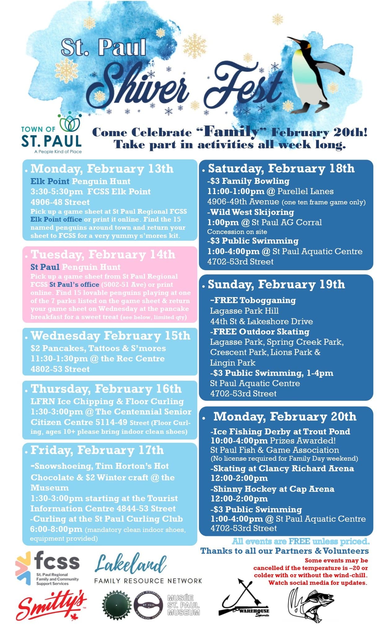 For example, on Wednesday, there was a toonie pancake lunch available at the St. Paul Recreation Centre. Winter activities will have a stronghold through the weekend.