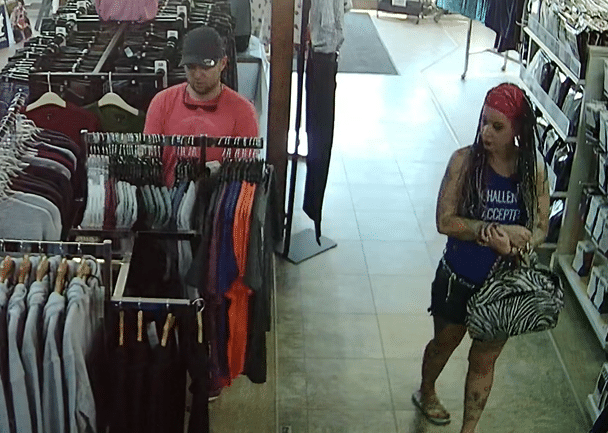On the evening Thursday, June 8, a man and a woman were both in the shop and seemed unrelated. It is alleged that the female distracted the owner and the male grabbed up to a dozen pair of jeans and multiple hoodies, before heading out.