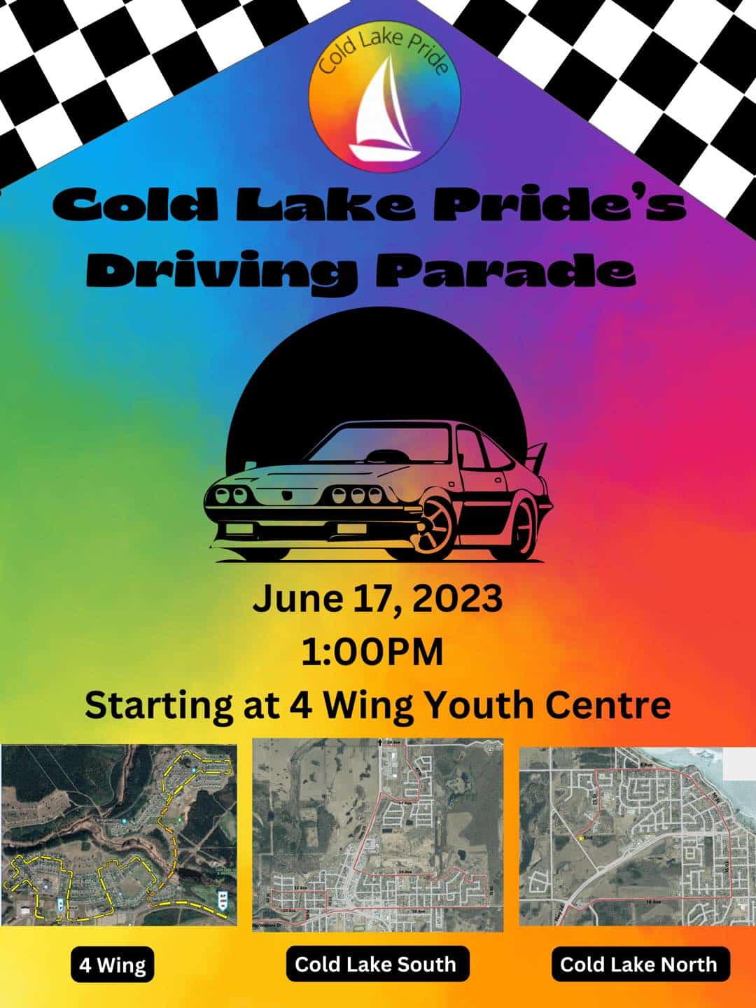 Cold Lake Pride is holding its Driving Parade through Cold Lake South, North, and through 4 Wing residential areas.