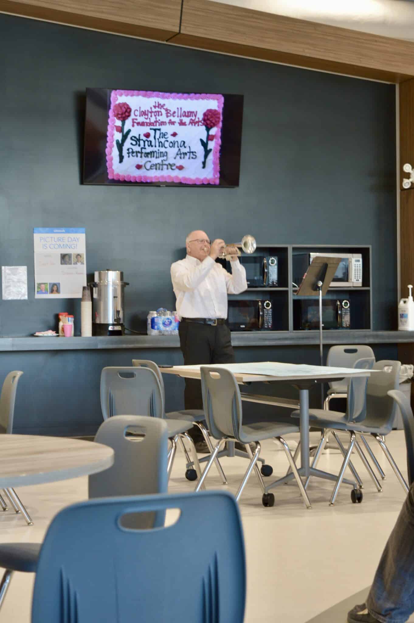 Friday, September 22, was the Clayton Bellamy Foundation For The Arts groundbreaking ceremony and cheque presentation at the Bonnyville Centralized High School for the Strathcona Resources Performing Arts Centre.