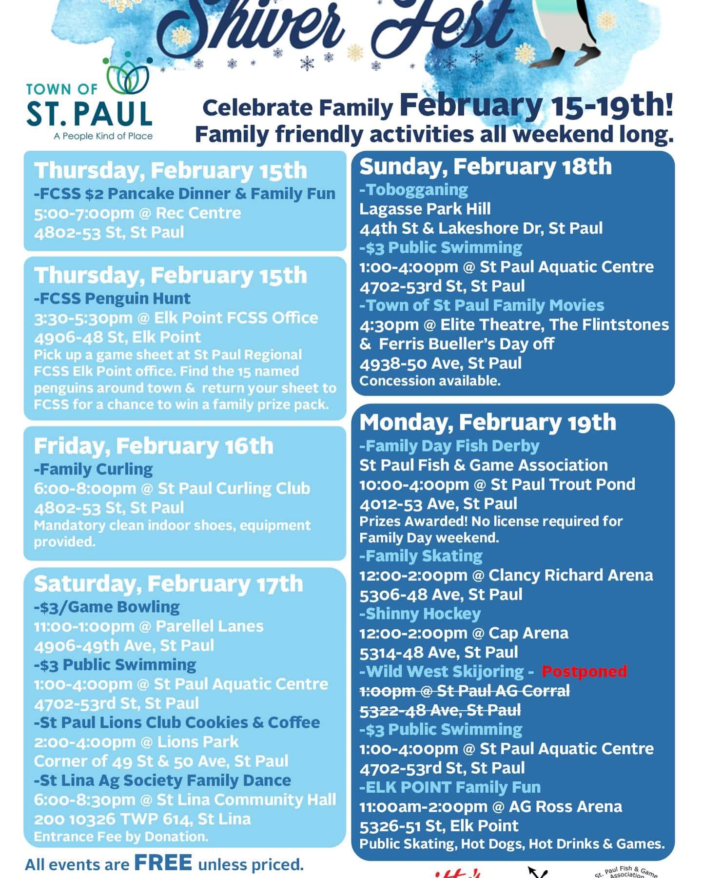 Whether its family curling, cheap bowling or swimming, the St. Lina Society’s family dance, or tobogganing, there are a variety of free or reduced price activities through the weekend to enjoy.