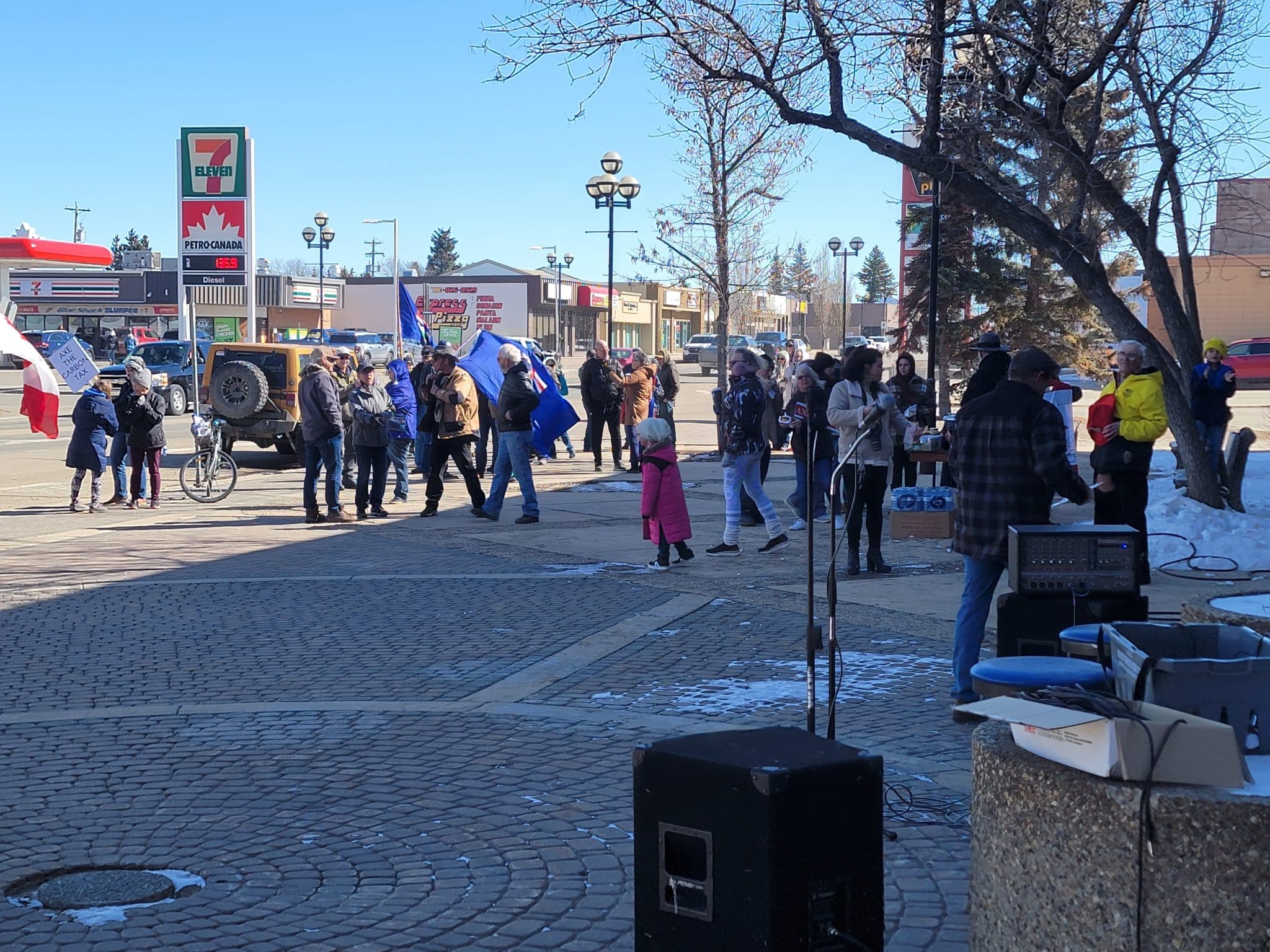 The gathering saw Alberta and Canada flags, signs to “Axe the Tax”, and a barbeque which raised about $152 for the Bonnyville Food Bank.