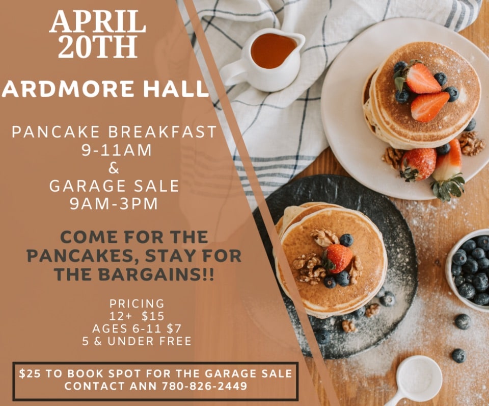 Similarly, the Ardmore Hall is having a breakfast and garage sale on Saturday as well. A pancake breakfast will be happening from 9:00-11:00AM, with the garage sale scheduled from 9:00AM-3:00PM.