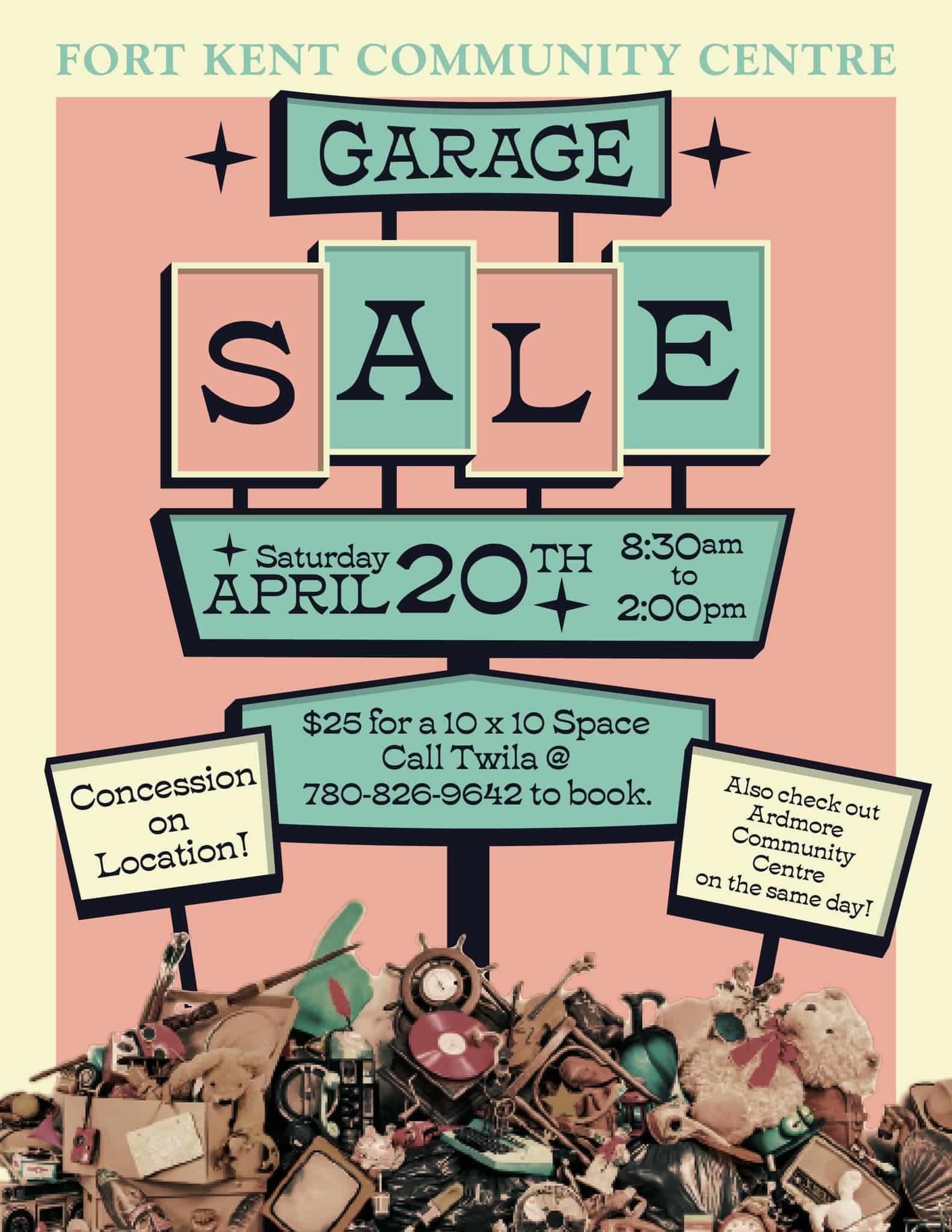 Spots are filling up for the garage sale. To ensure a spot at the garage sale, contact Twila Gamache to book at 780-826-9642.