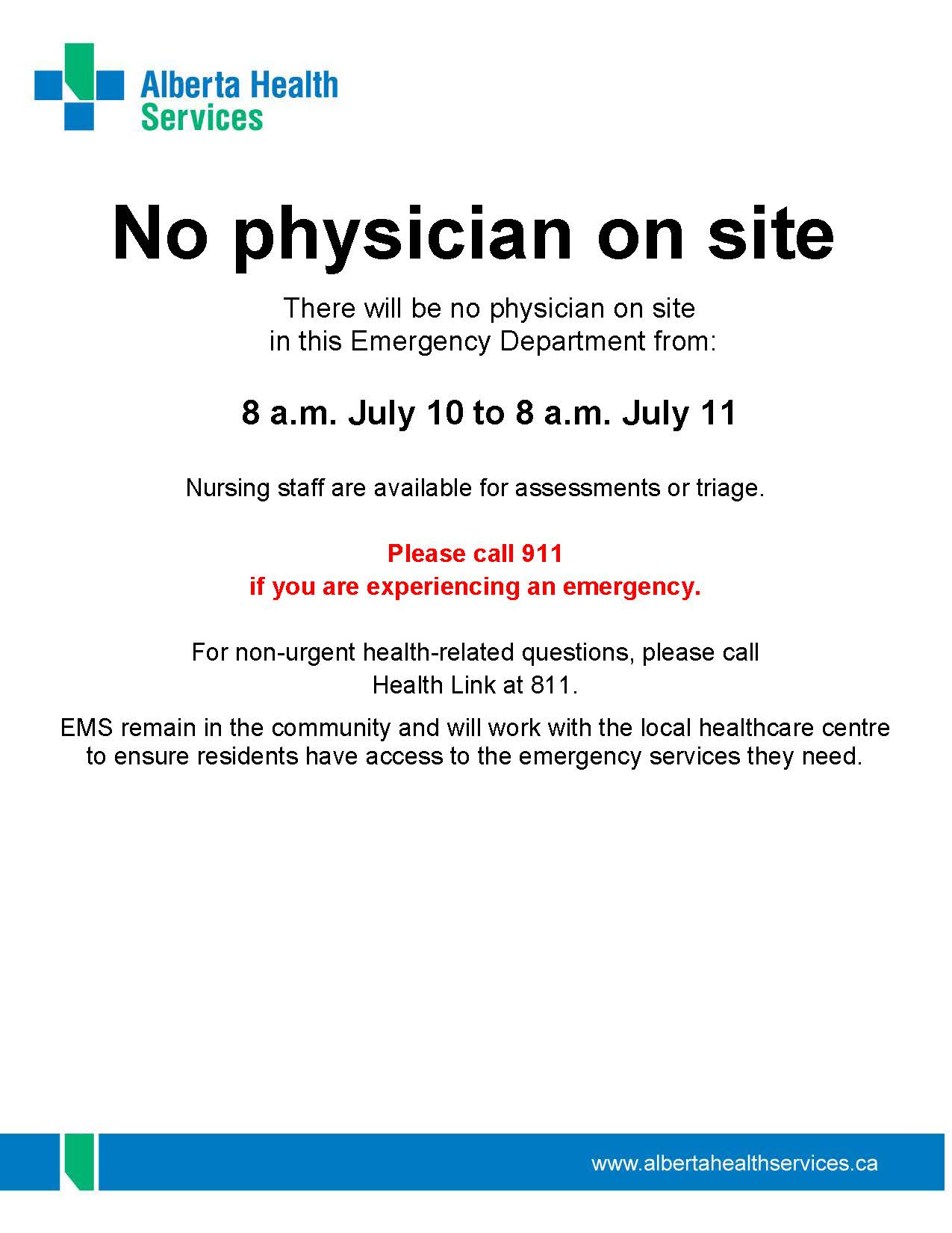 Elk Point will be without a physician in their Emergency Department tomorrow.