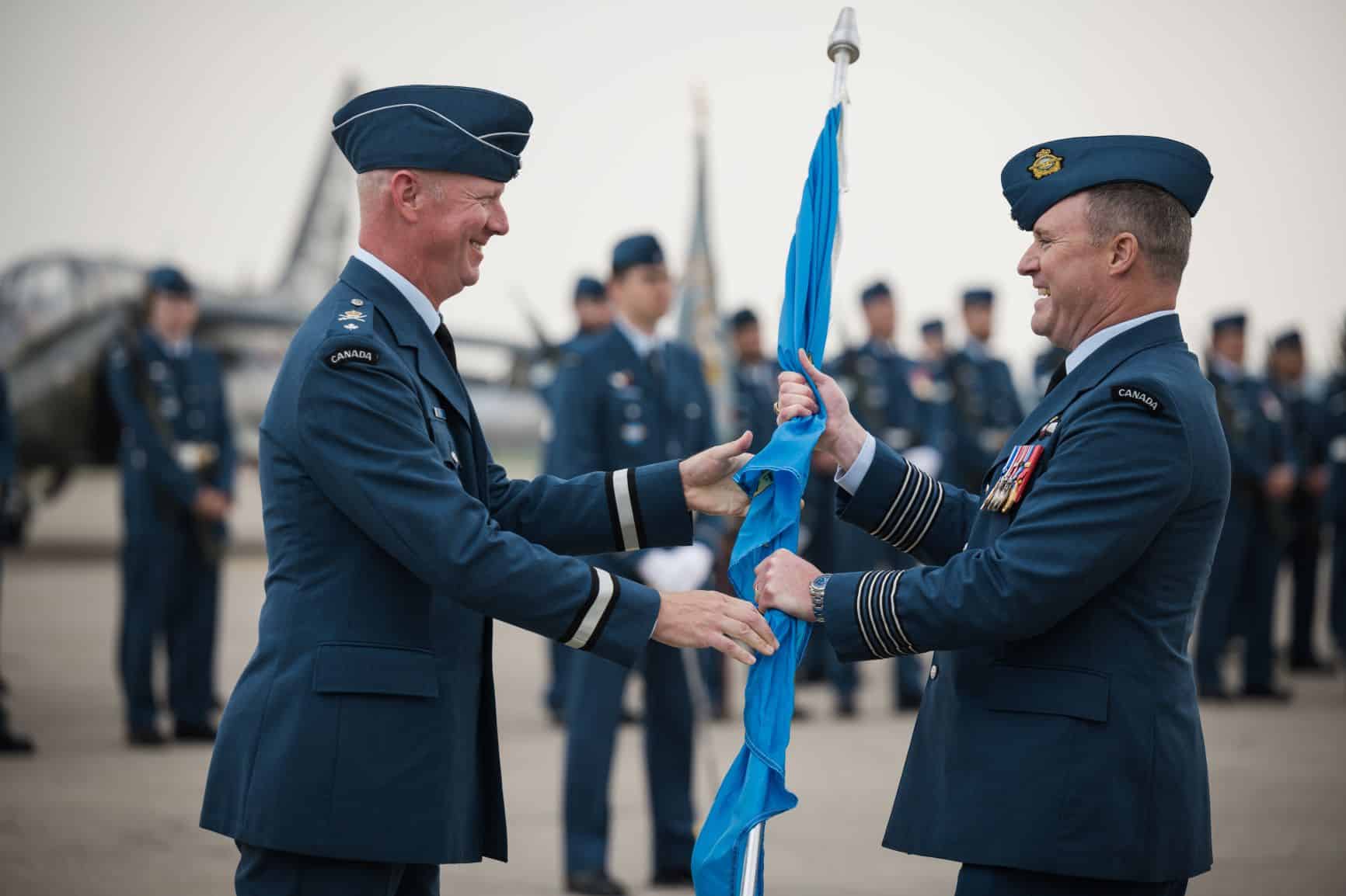 The Wing Change of Command ceremony was presided over by the Deputy Commander of 1 Canadian Air Division in Winnipeg, Brigadier-General Paul Doyle, who was previously Wing Commander at 4 Wing.