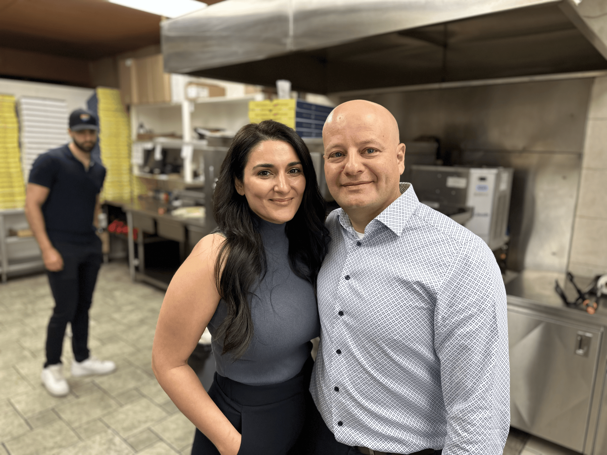 “But behind this Express pizza is not about making the fresh dough daily or the sauce. There’s always someone behind this there’s always someone behind this cabinet that takes this plane and fly it is this beautiful lady here,” Sal said of his wife Sara.