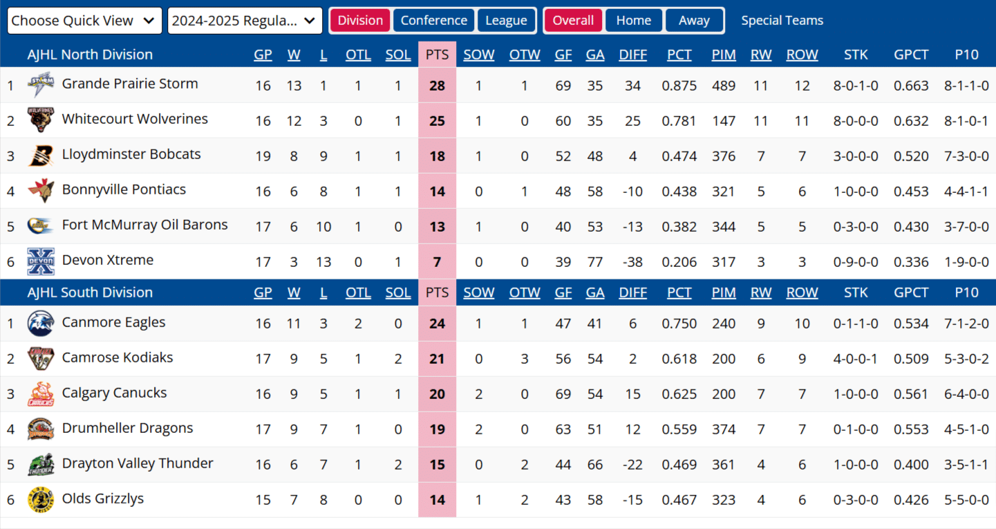 - Grande Prairie has lost just once in regulation in 16 games, boasting a 13-1-2 record. New head coach Chris Schmidt has them 11 wins away from their total all of last season. They have a goal differential of +34 and will play the Bobcats the night before the Pontiacs.