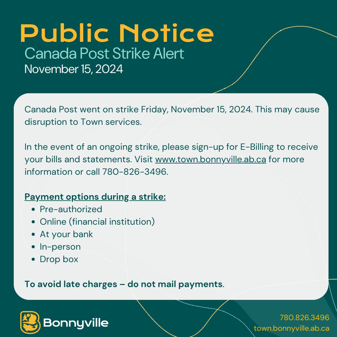 The Town of Bonnyville said this may cause disruptions to Town services.