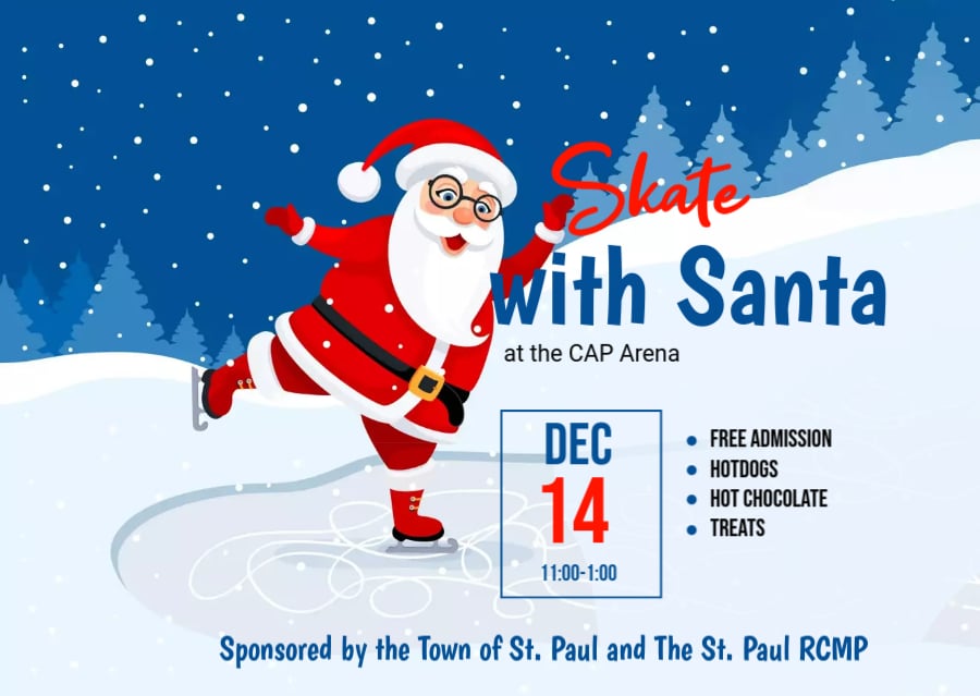 On Saturday, Santa Claus is coming to town for a skate. It’s free to enjoy with hot dogs and hot chocolate while you lace them up with Kris Kringle.