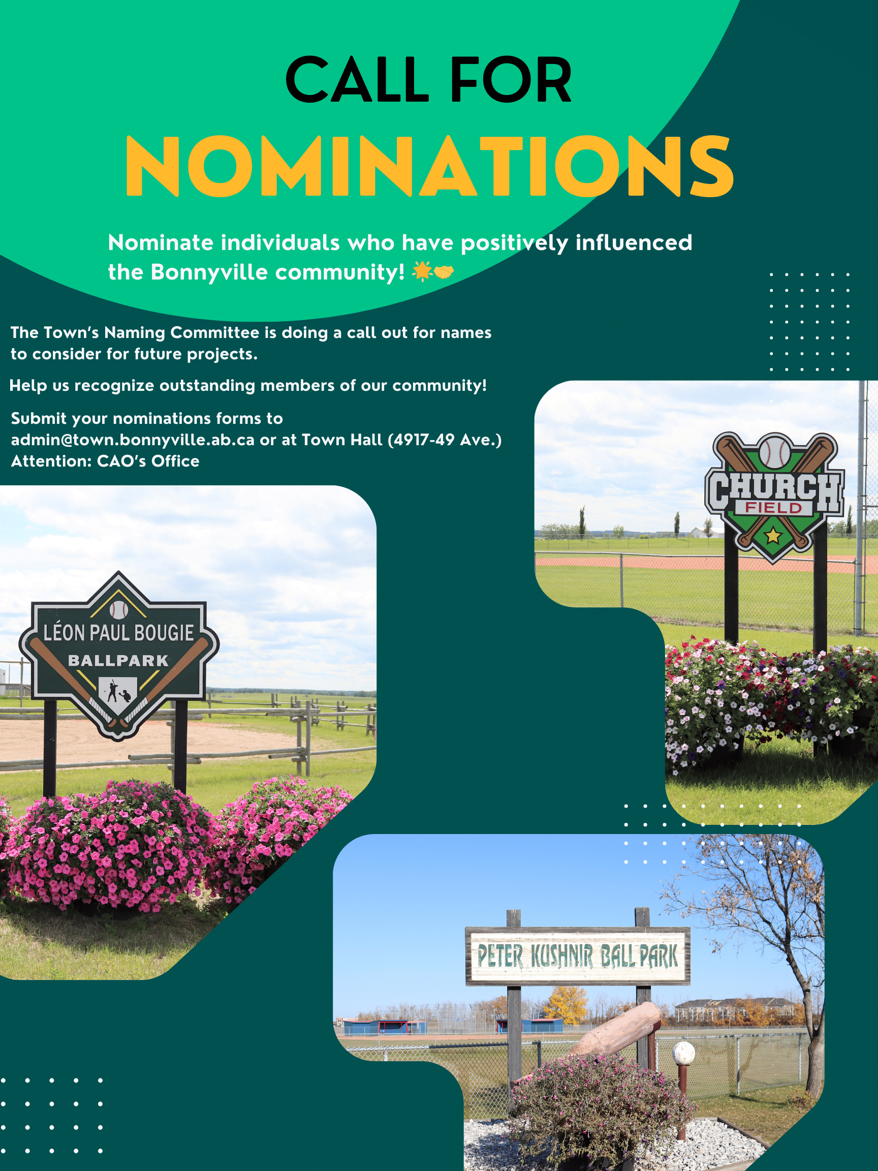 The Town of Bonnyville Naming Committee is inviting nominations to recognize residents who have made a meaningful impact on our community. This is your chance to celebrate individuals whose contributions have left a lasting legacy in the Town of Bonnyville.