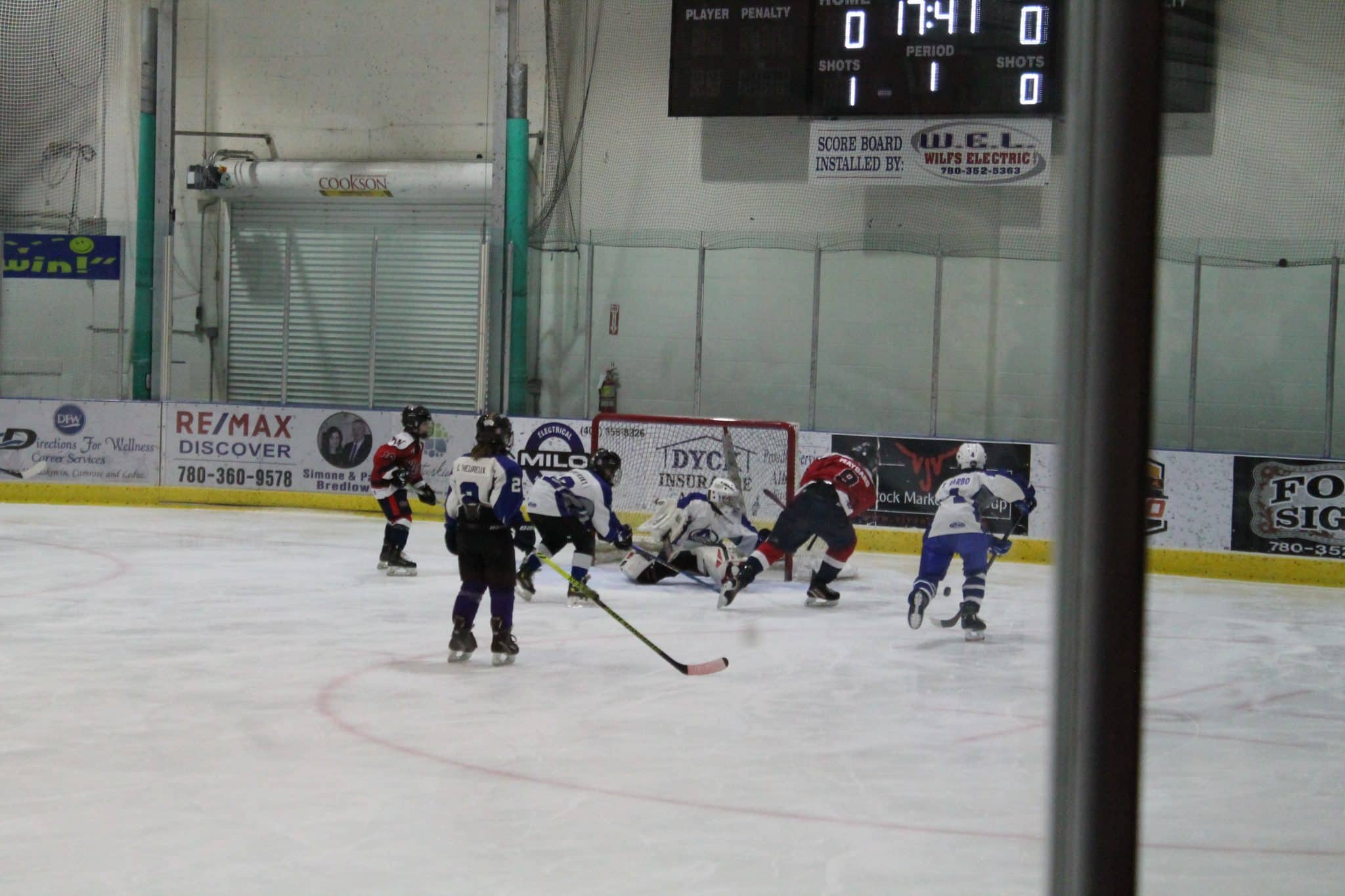 The U11 Avalanche hosted Bonnyville on Saturday morning, with the game ending in a 4–4 tie. Aspyn “Machine Gun” Kelly scored two goals and added an assist. Jase “The Jackal” Malo scored a goal and assisted on another, while “Hurricane” Kael Large added a goal. Maximus “To the Max” Laliberte chipped in with an assist. The goalies from both teams played superbly, including our own Benny “Boy” Saddleback, who made some sensational, timely saves.