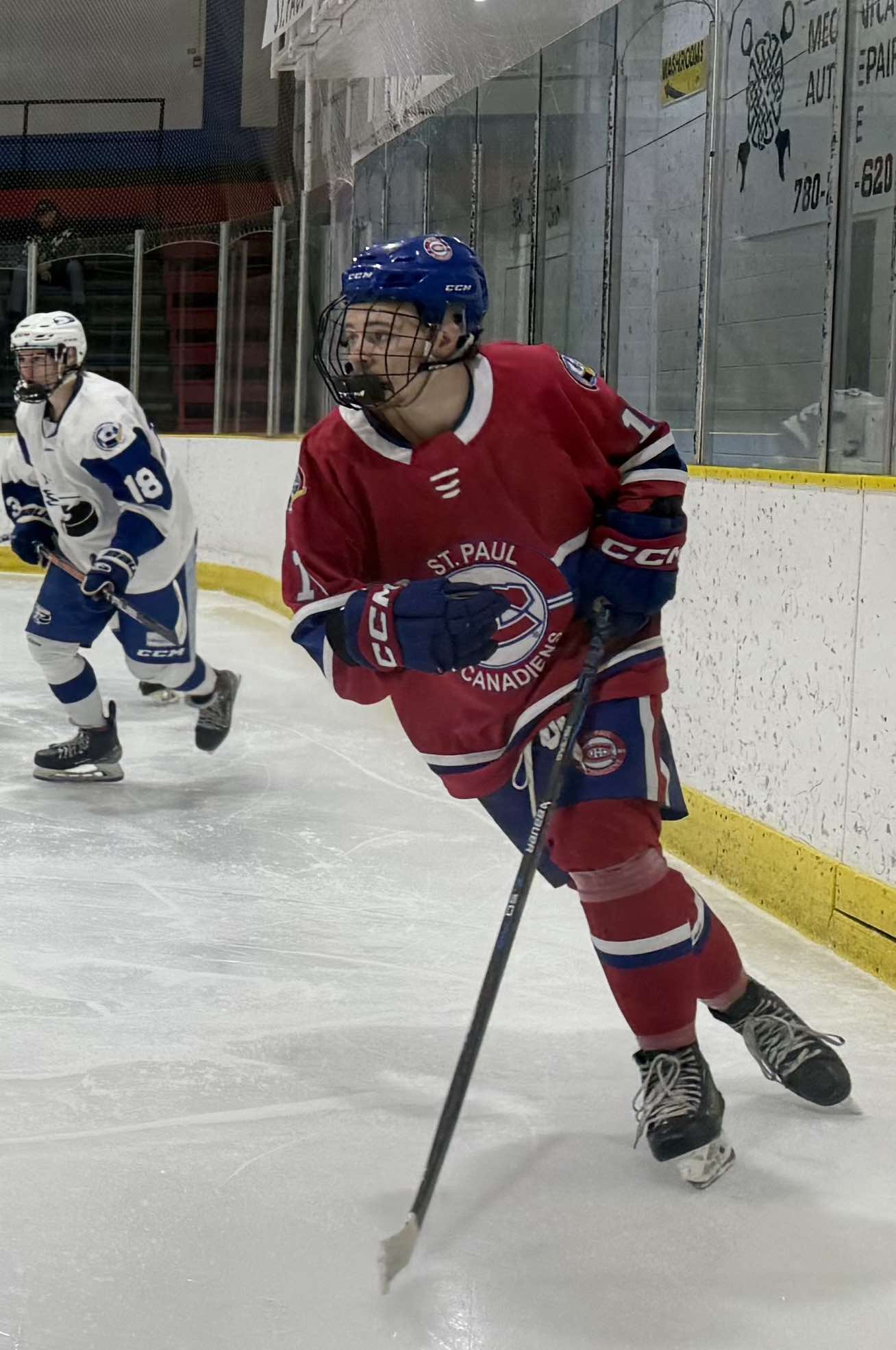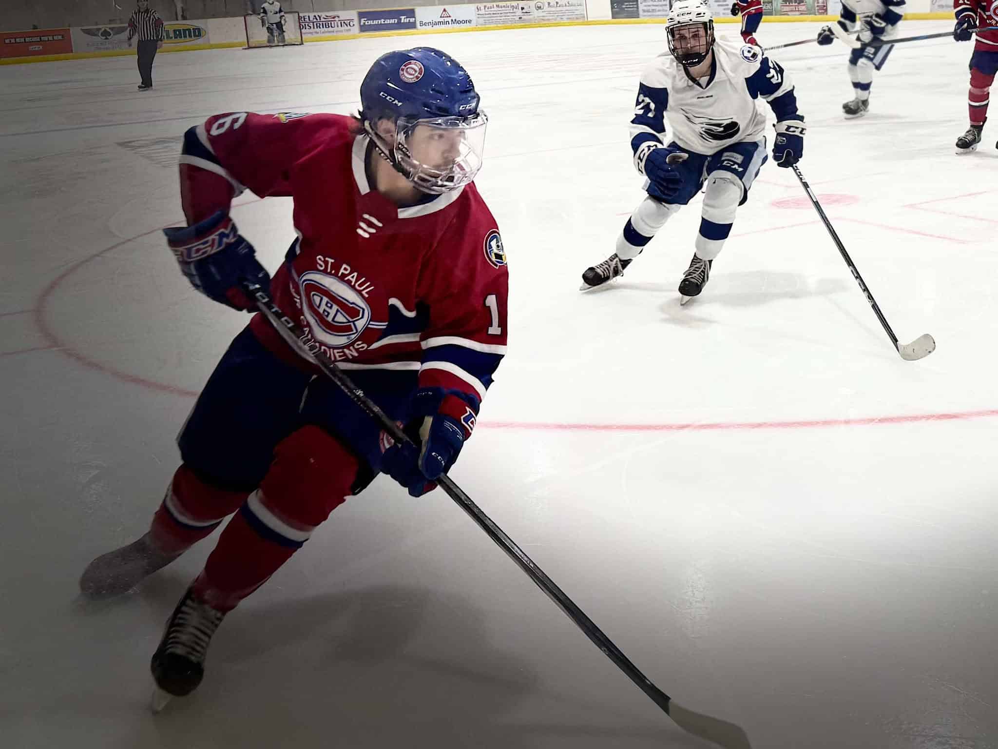 St. Paul Canadiens captain Rylan Cardinal retrieves a puck in the corner during Game 1 of their first round series.