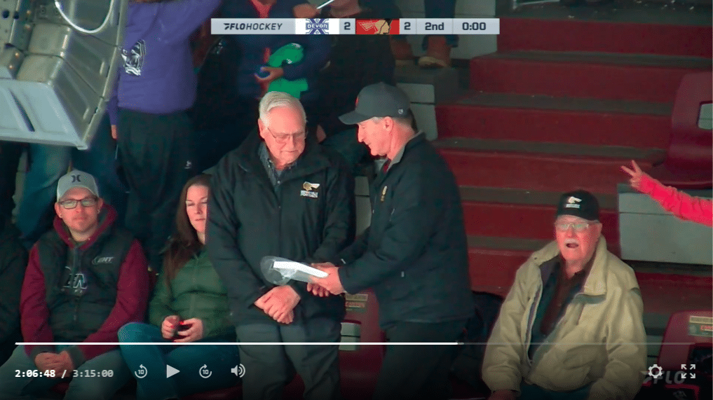 The evening also provided the last chance to tip the cap to the graduating 20-year-old players on this year’s team: Myles Gauld, Lynden Hanvold, Kyle Kalamaras, (pictured above) and Brady Estabrook.