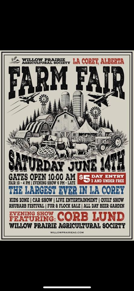 They are thankful of the community are proud to announce their upcoming Farm Fair with musical guest Corb Lund on Saturday, June 14.