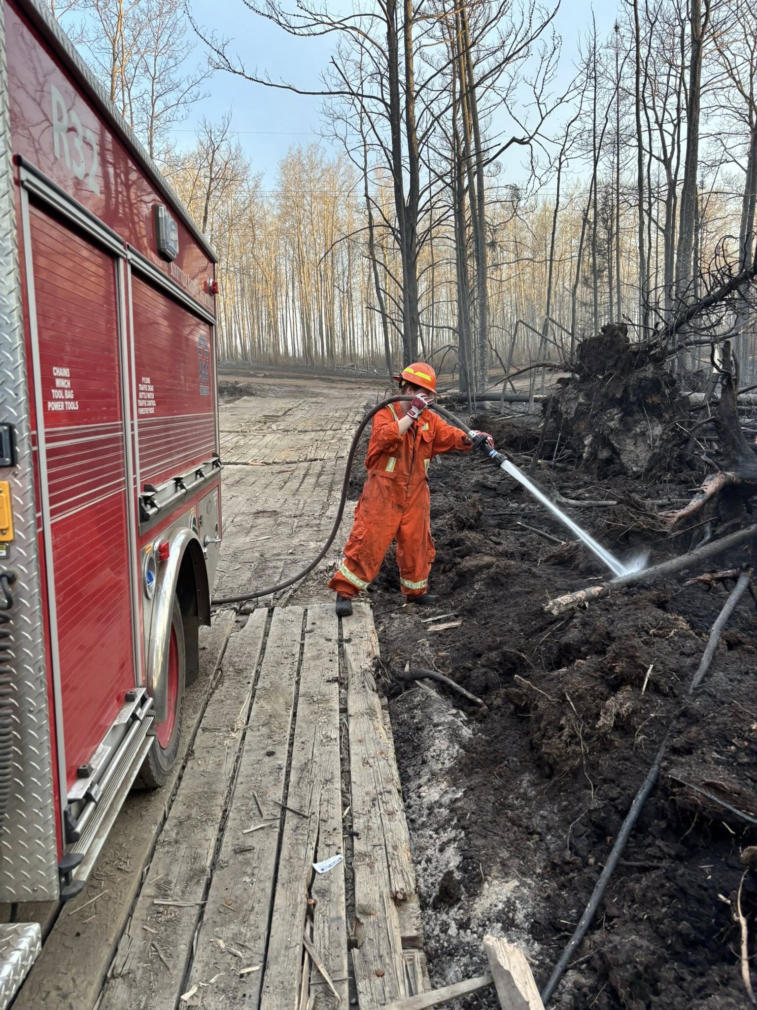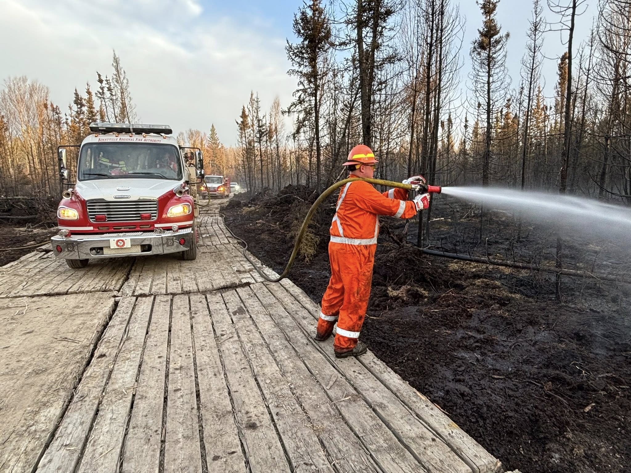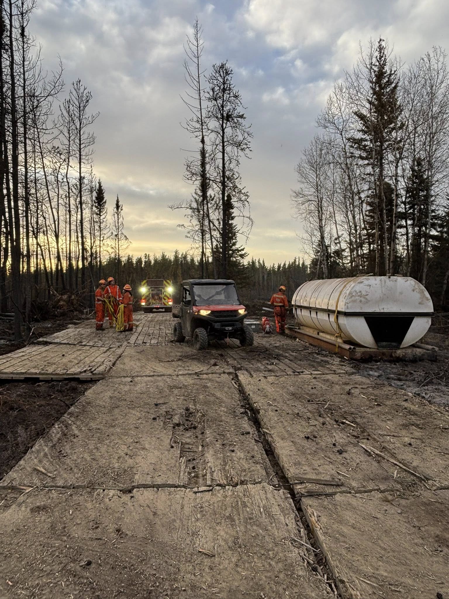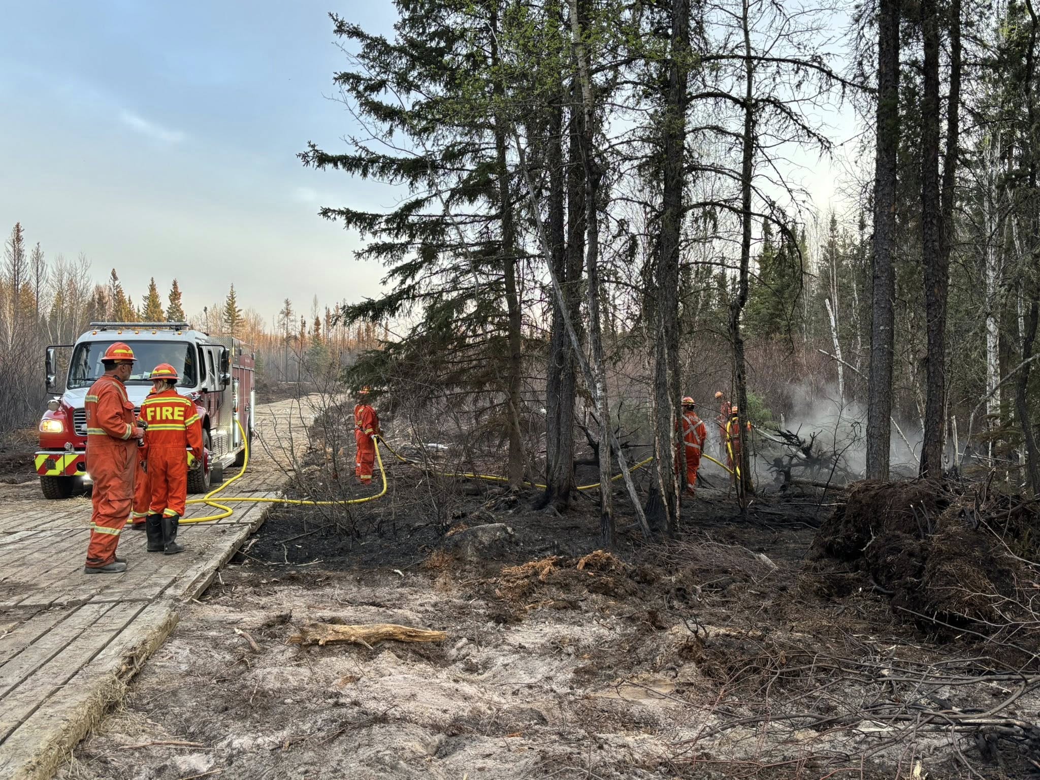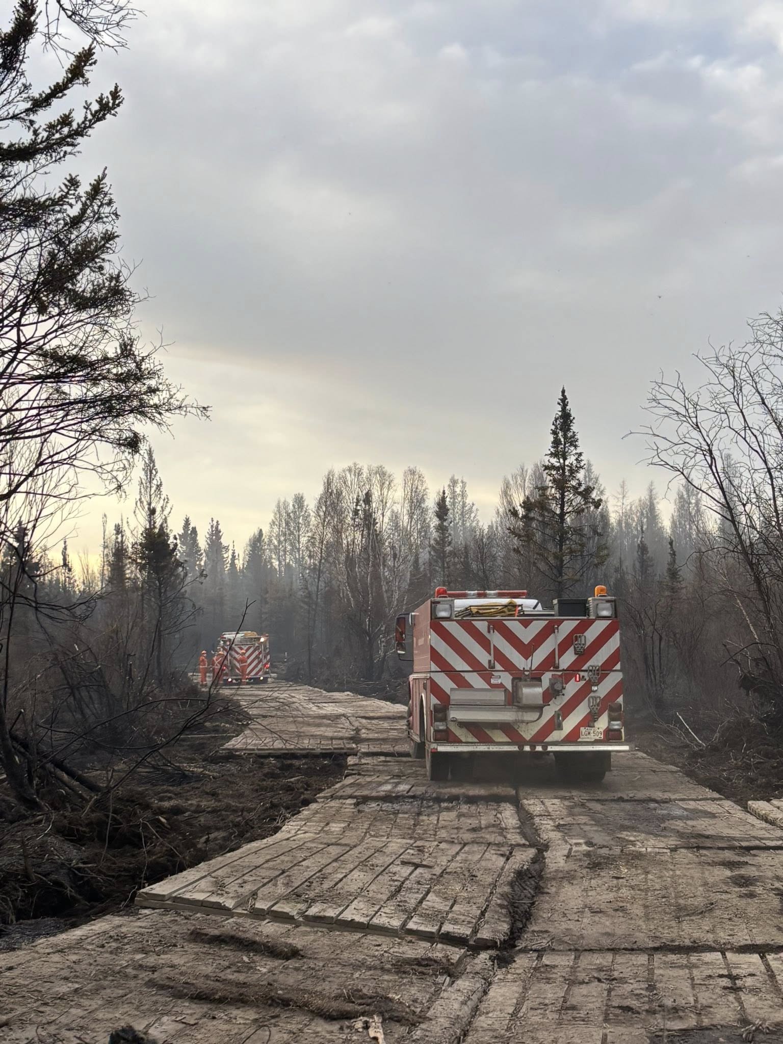 The area of the fire has been difficult with the muskeg-like terrain to fight. Matting has been placed to allow vehicles and equipment to access the core of the brush.