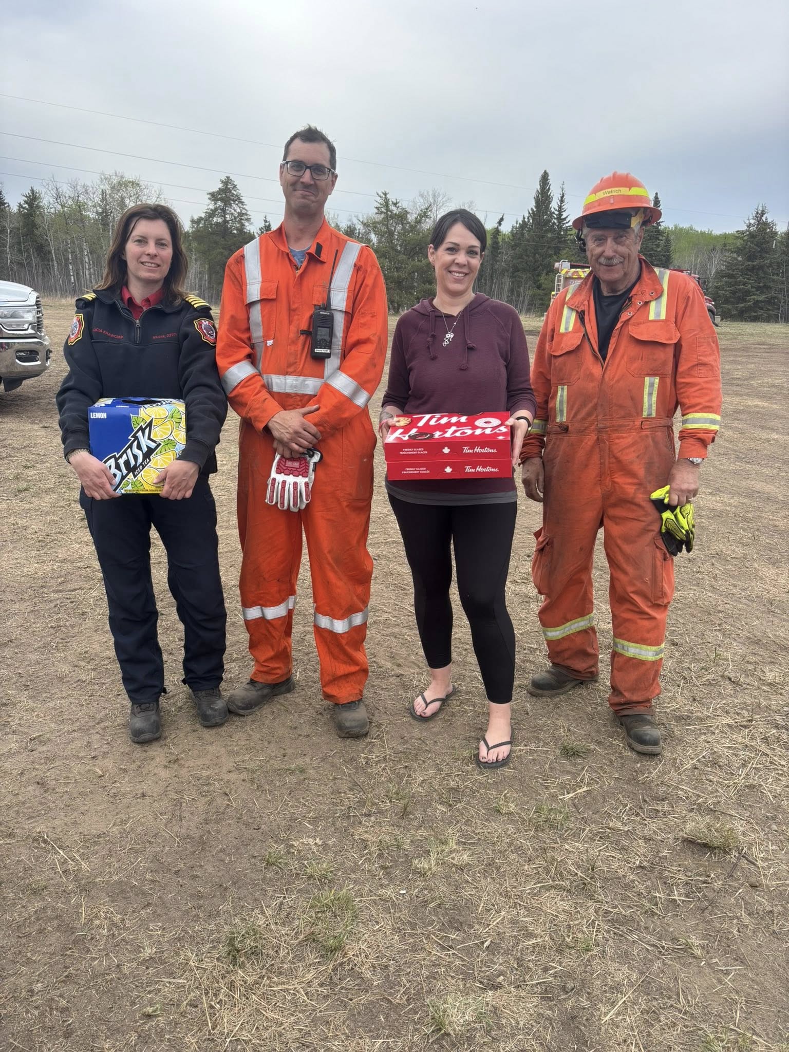 Sprinklers are being installed and will spray water continuously in strategic locations. The M.D. of Bonnyville supplied a large water tank to feed the sprinklers. Work continues on cleanup and site remediation.