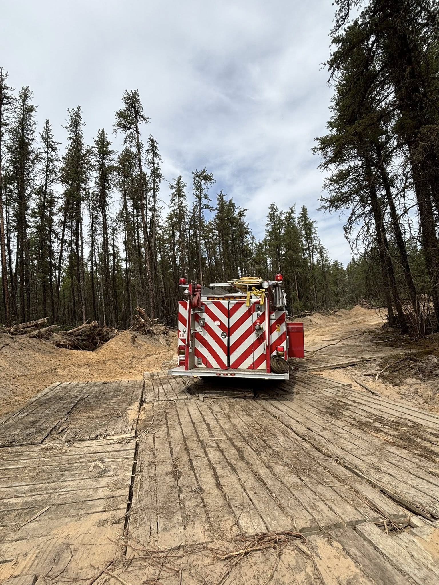 The area of the fire has been difficult with the muskeg-like terrain to fight. Matting has been placed to allow vehicles and equipment to access the core of the brush.