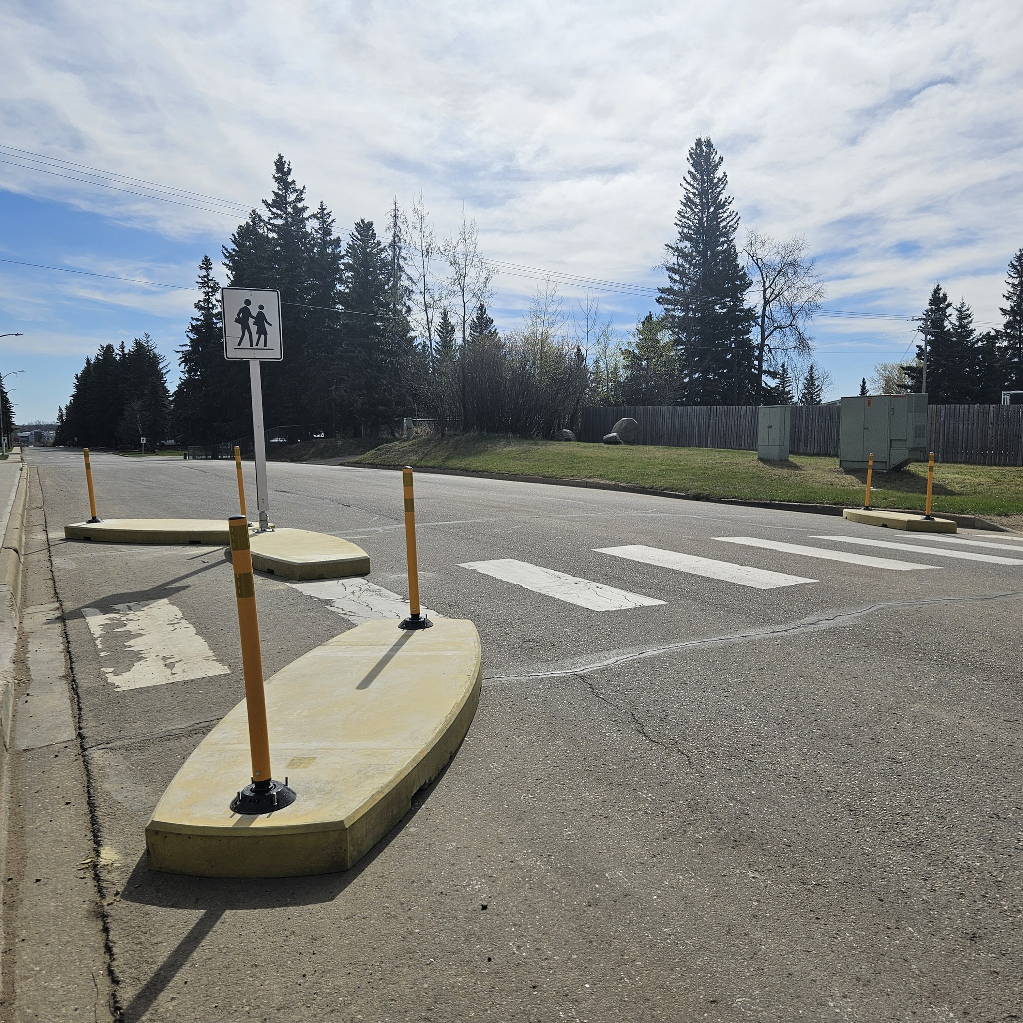 New, movable curbs were raised as an option to narrow the roadway as people leave the 30 kilometre an hour zone by the beach to slow the increase in speed that residents have noticed as motorists pass the last speed bump on 1 Avenue.