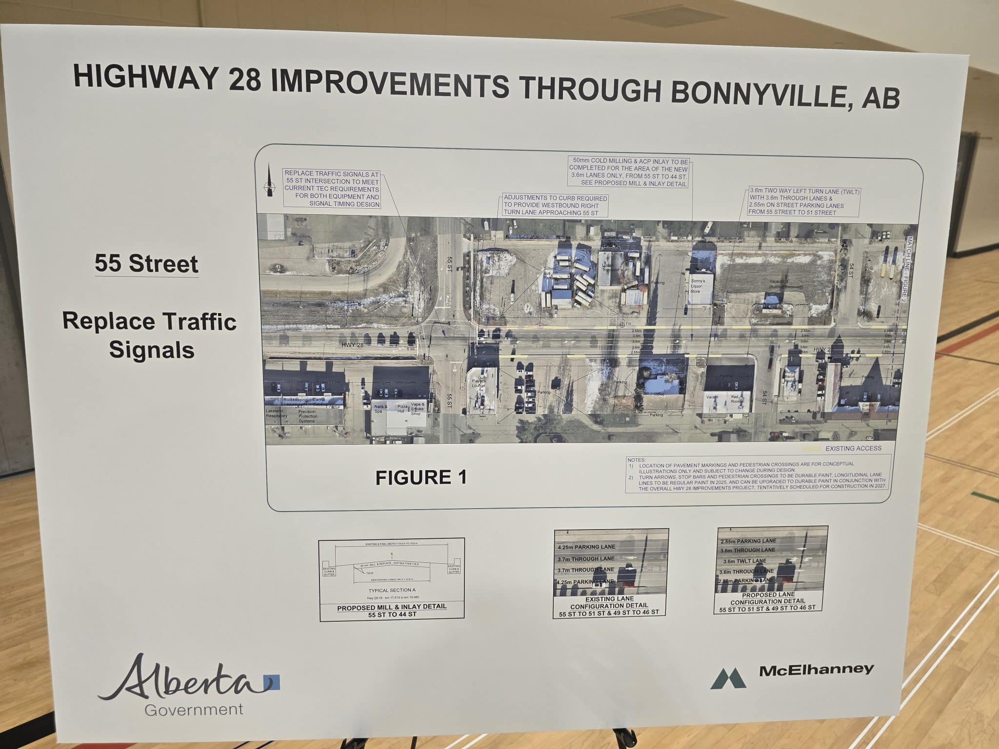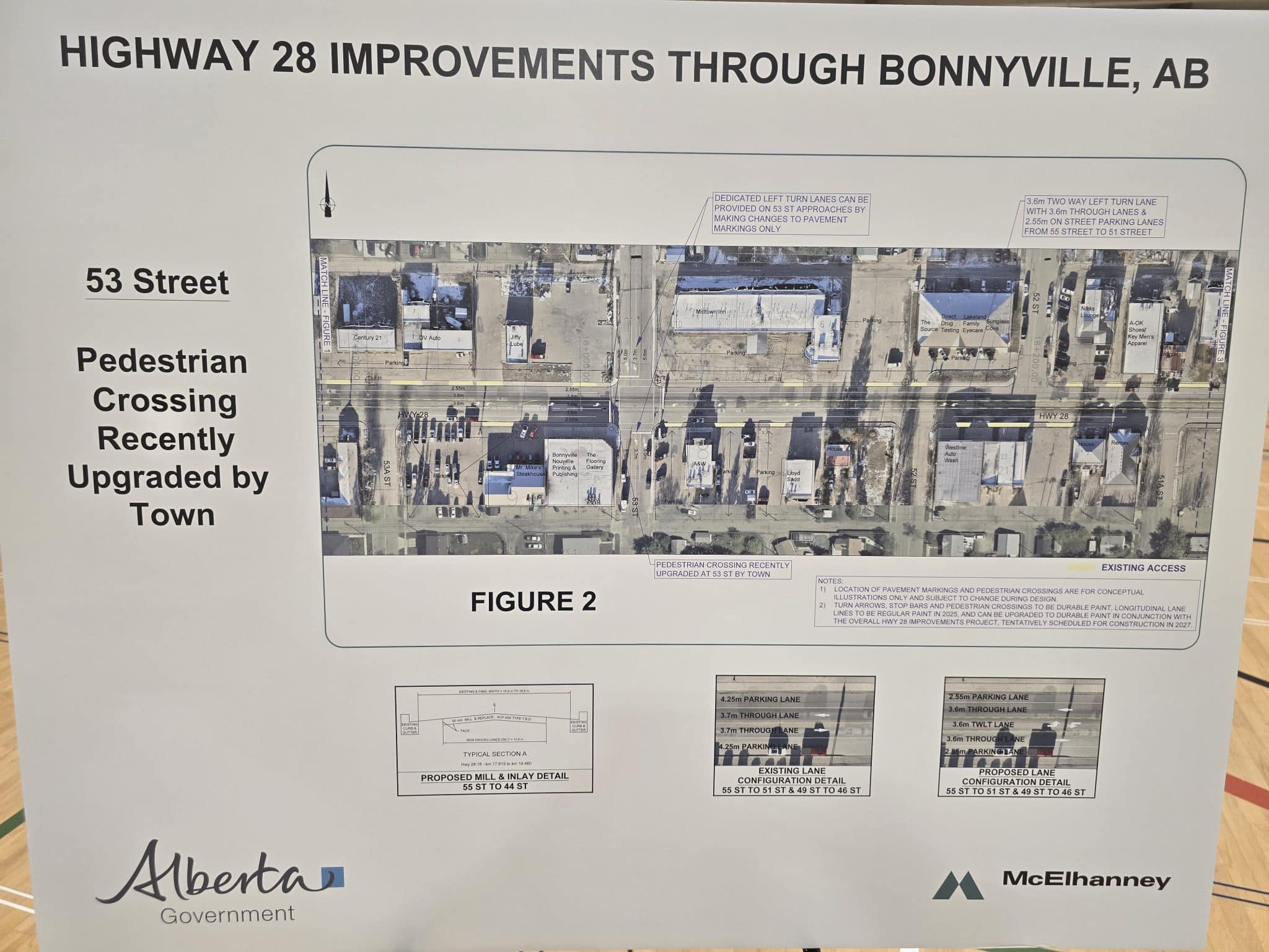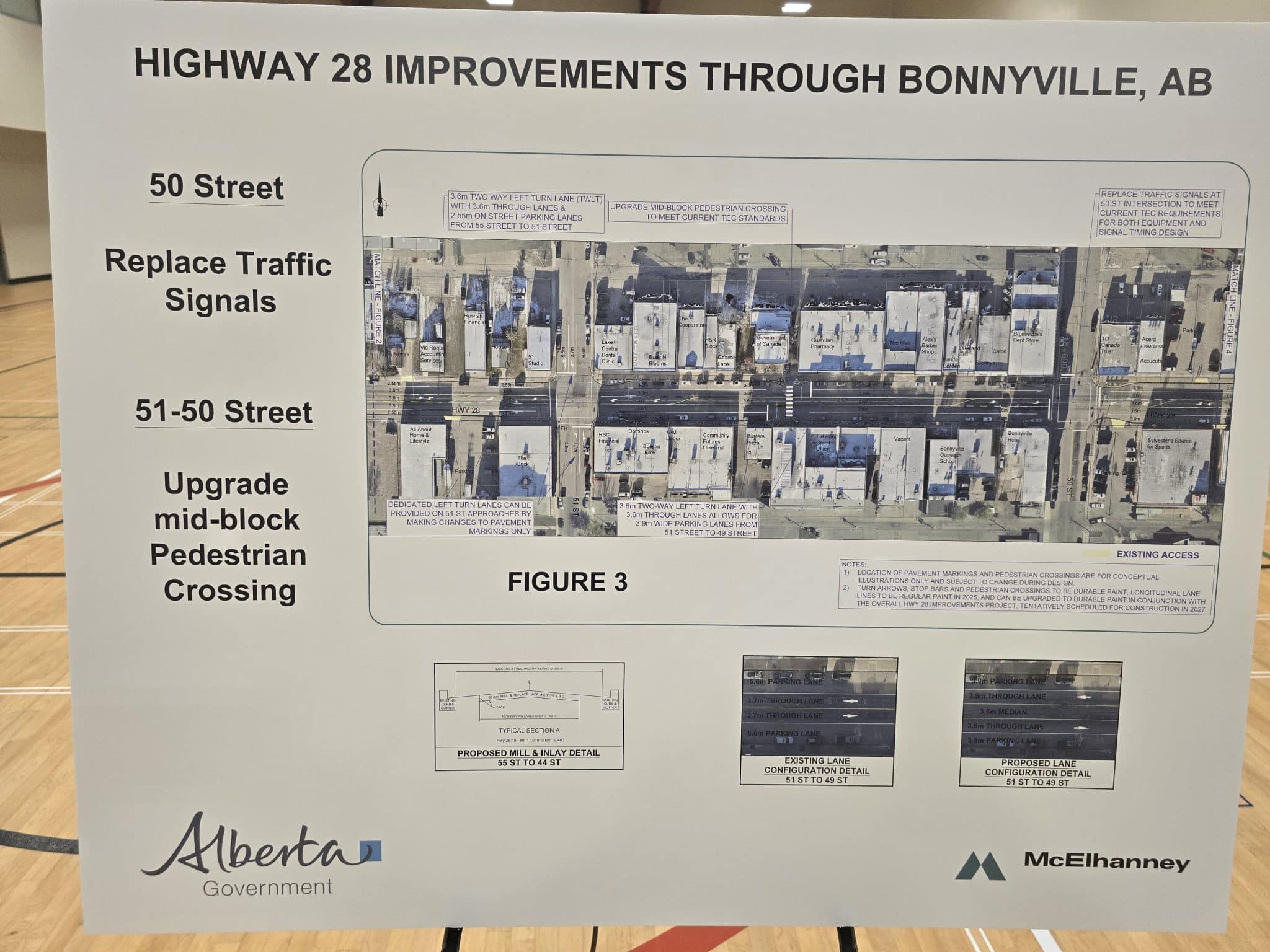 The first publicly released information from Alberta Transportation about the improvements to the municipal portion of Highway 28 came out on Thursday evening at GenMec ACL Hall.