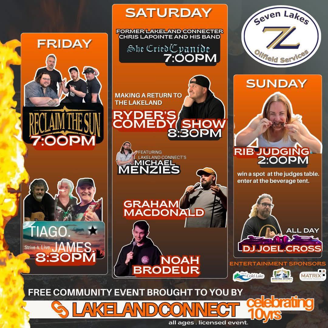 It’ll include Lakeland Connect’s own Michael Menzies, and Edmonton acts Graham MacDonald and Noah Brodeur. The comedy begins at 8:30PM.