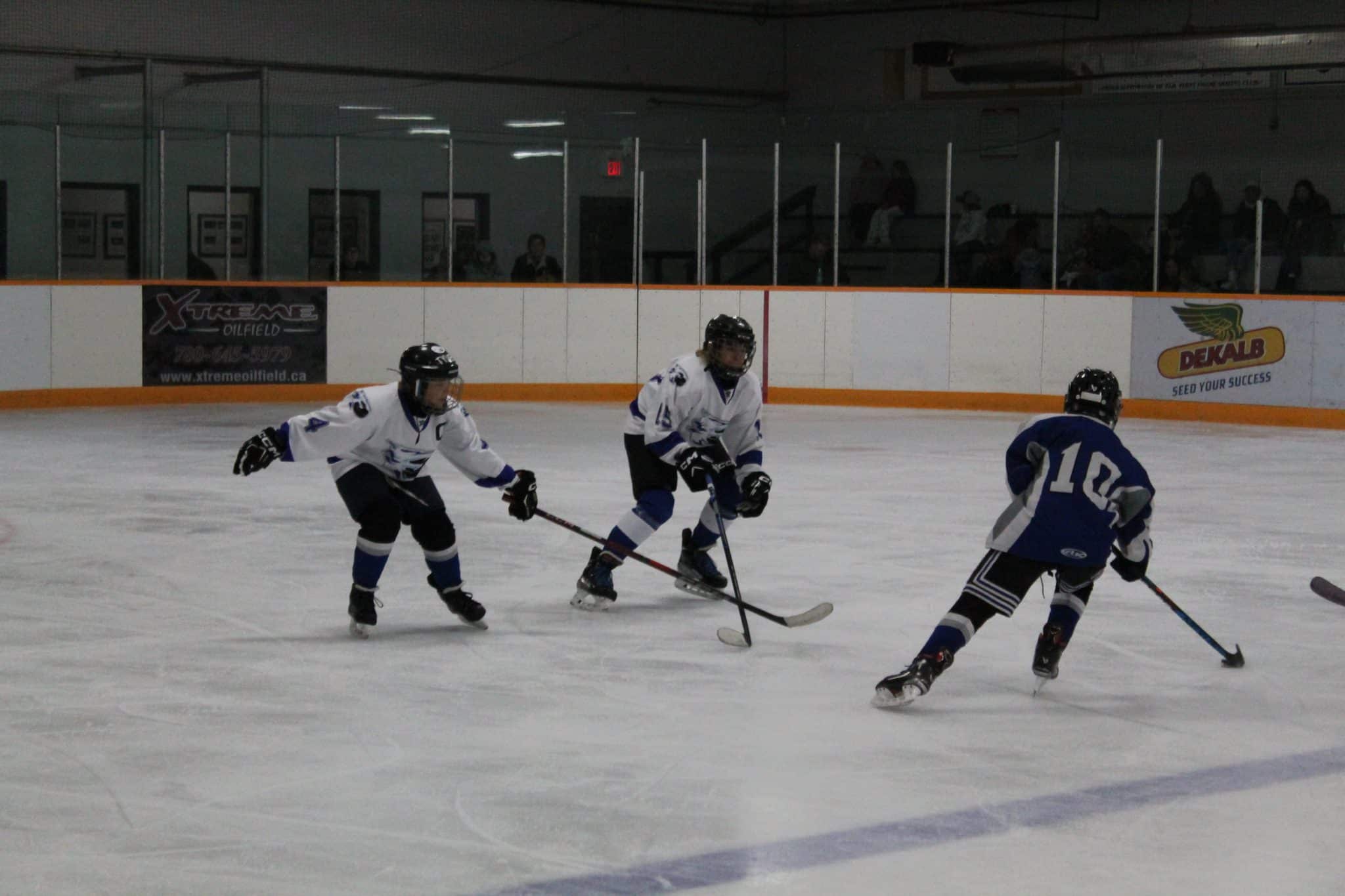 Thomas “The Tank” Morris, Jaydn “The Shark” Sakowski, Rylan “Freight Train” Kryzanowski, and Obrey John notched assists. On Sunday, the U13s took one on the chin from a strong Cold Lake squad. Benjamin “Benny Boy” Saddleback strapped on the big pads for both games.